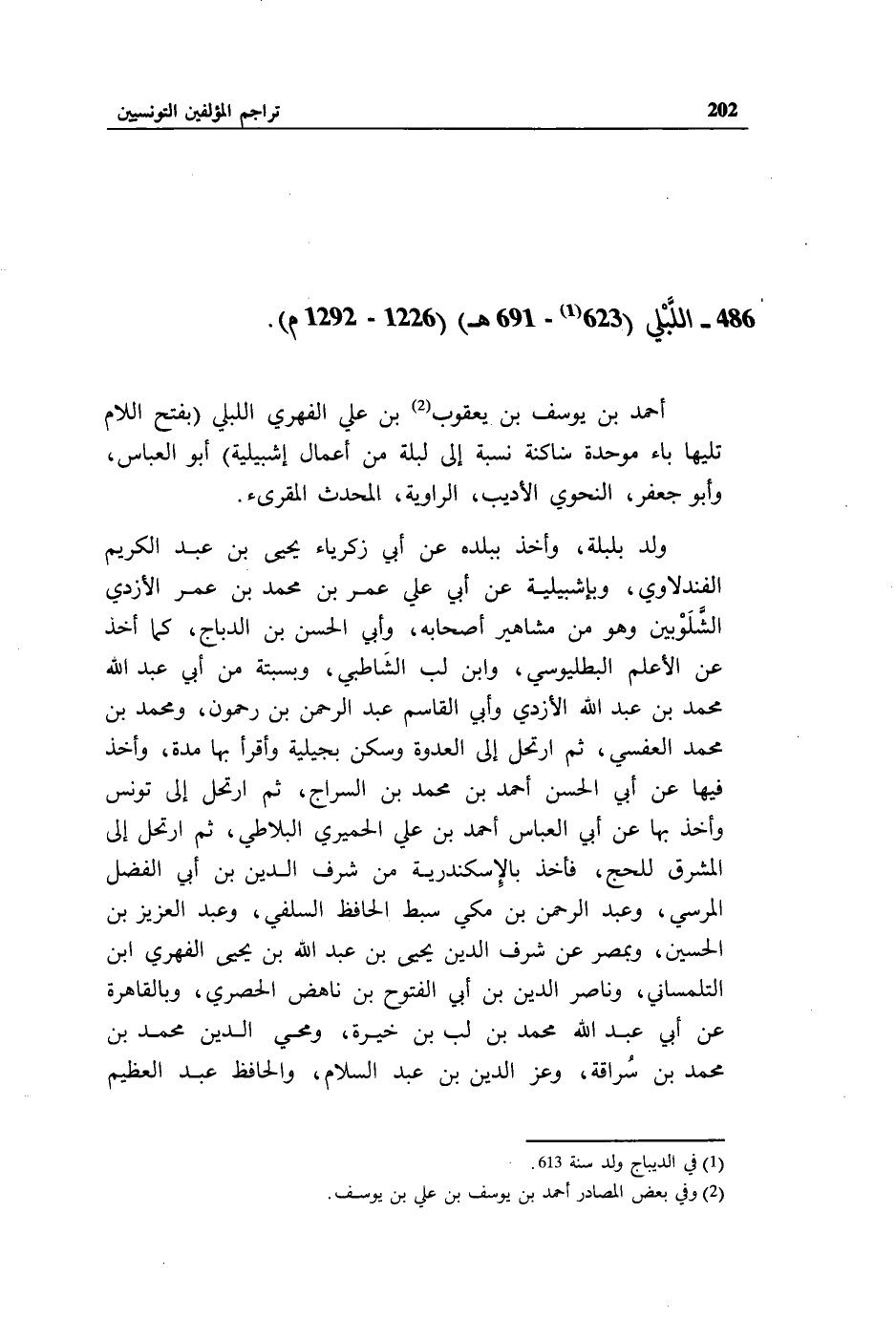 486 - اللّبلي (623 (¬1) - 691 هـ) (1226 - 1292 م).