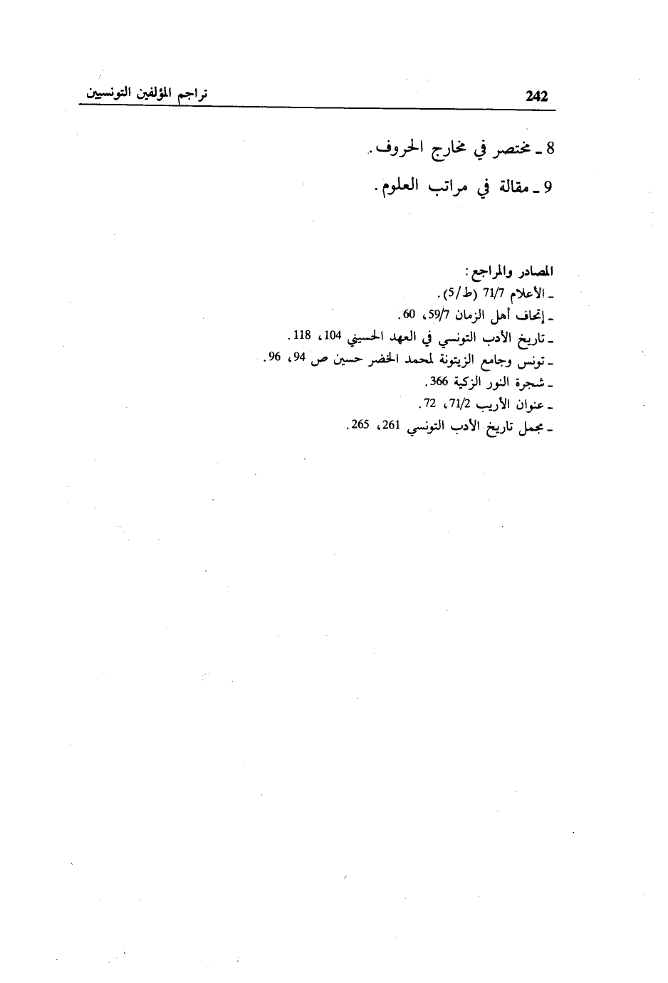 - مجمل تاريخ الأدب التونسي 261، 265.