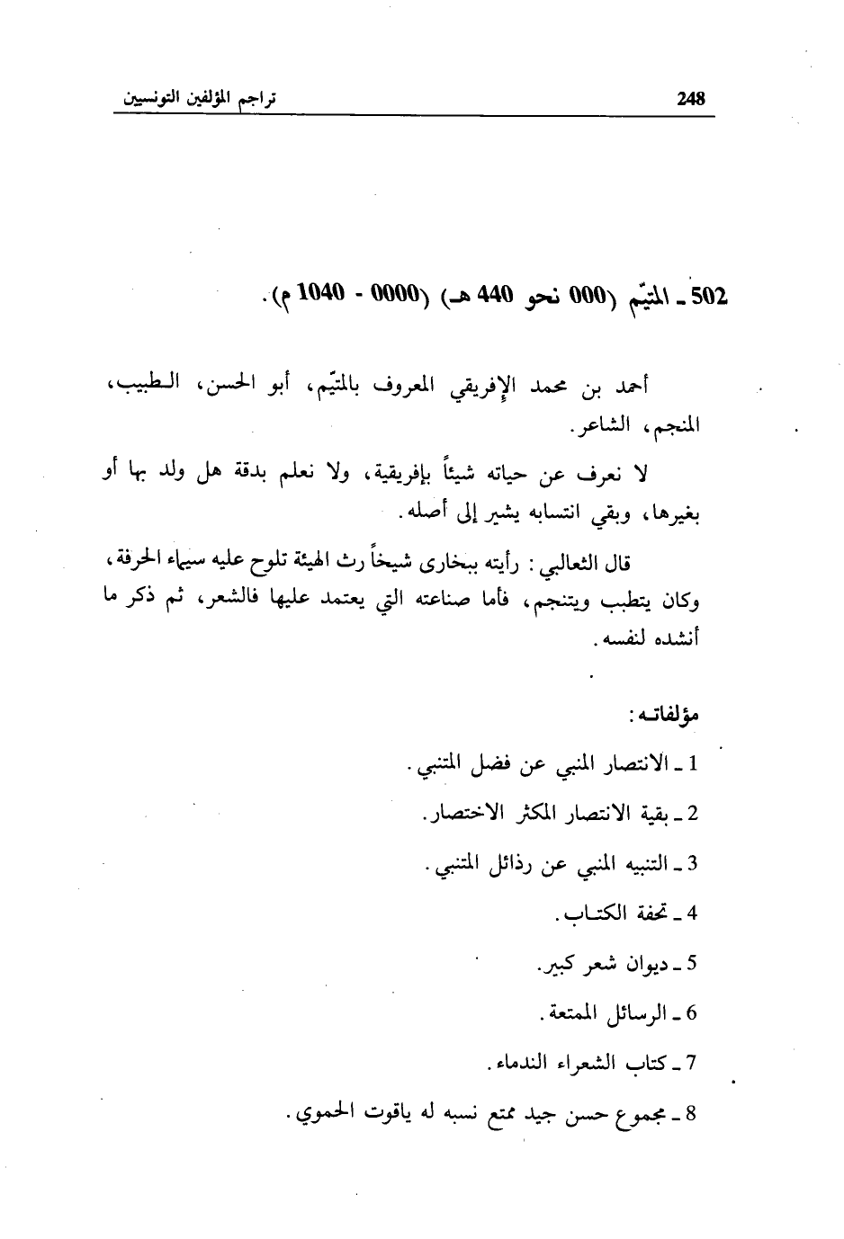 502 - المتيّم (000 نحو 440 هـ) (0000 - 1040 م).