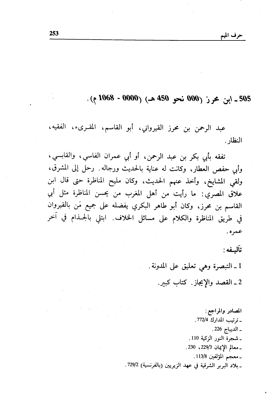 505 - ابن محرز (000 نحو 450 هـ) (0000 - 1068 م).