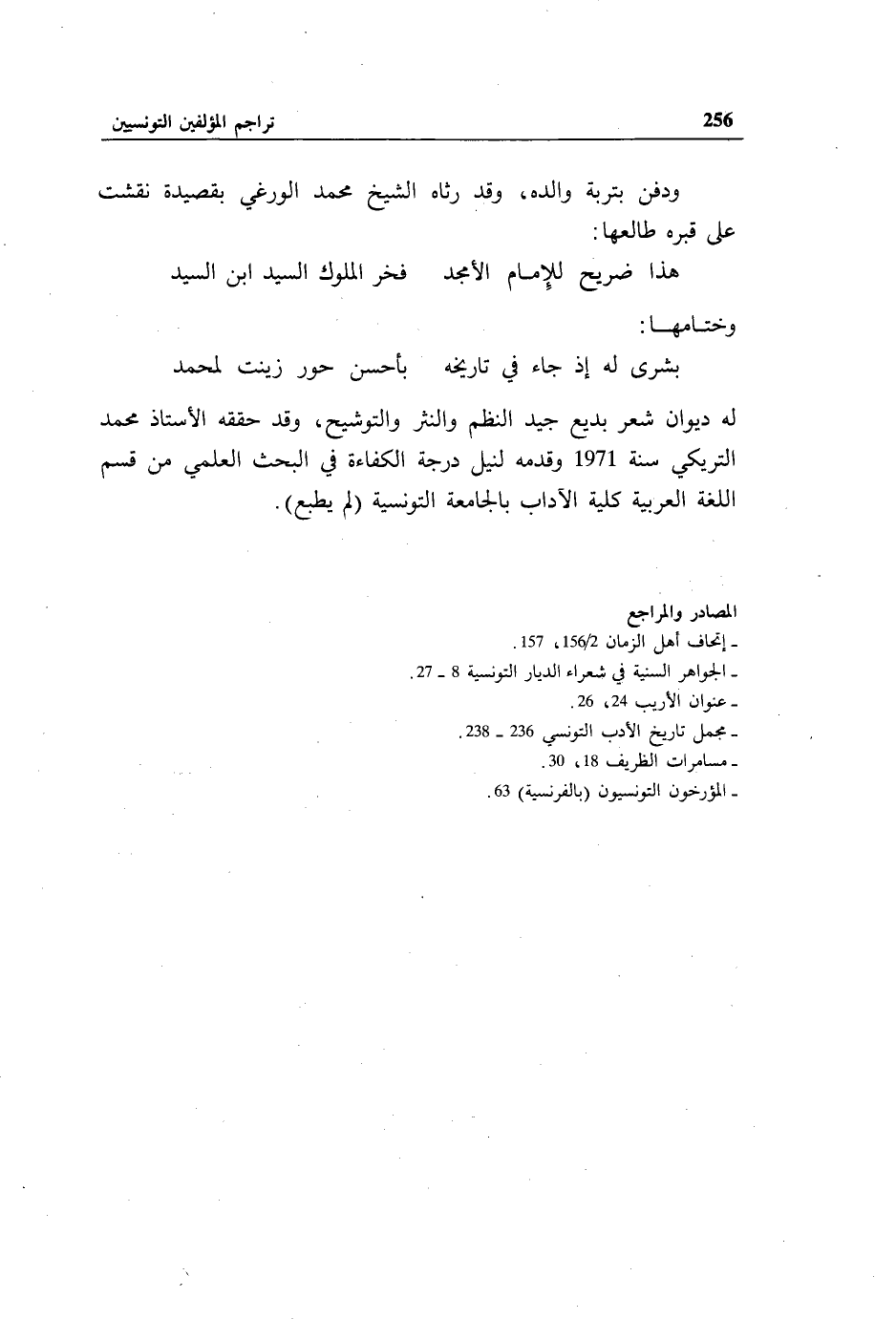 - مجمل تاريخ الأدب التونسي 236 - 238.