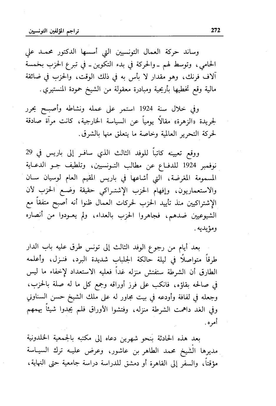 ووقع تعيينه كاتبا للوفد الثالث الذي سافر إلى باريس في 29 نوفمبر 1924 للدفاع عن مطالب التونسيين، وتلطيف جو الدعاية المسمومة المغرضة، التي أشاعها في باريس المقيم العام لوسيان سان والاستعماريون، وإفهام الحزب الاشتراكي حقيقة وضع الحزب لأن الاشتراكيين منذ تأييد الحزب لحركات العمال ظنوا أنه أصبح متفقا مع الشيوعيين ضدهم، فجاهروا الحزب بالعداء، ولم يعودوا من أنصاره ومؤيديه.