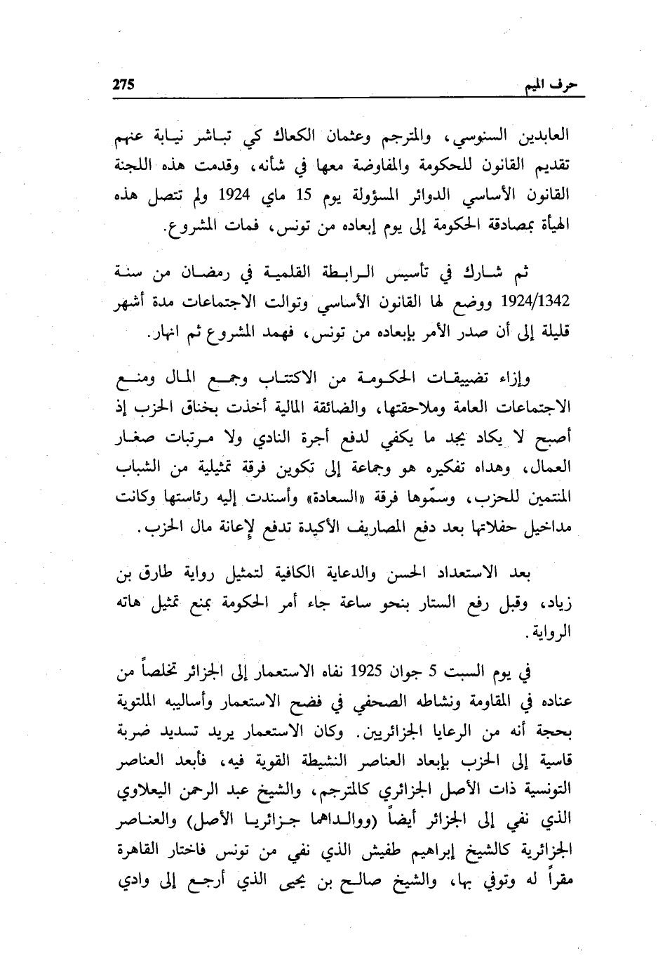 العابدين السنوسي، والمترجم وعثمان الكعاك كي تباشر نيابة عنهم تقديم القانون للحكومة والمفاوضة معها في شأنه، وقدمت هذه اللجنة القانون الأساسي الدوائر المسئولة يوم 15 ماي 1924 ولم تتصل هذه الهيئة بمصادقة الحكومة إلى يوم إبعاده من تونس، فمات المشروع.