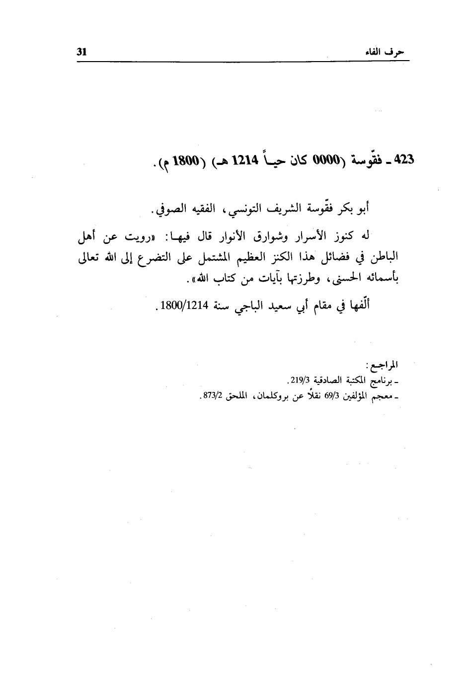 423 - فقّوسة (0000 كان حيا 1214 هـ) (1800 م).