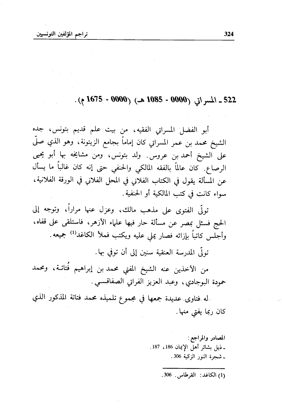 522 - المسراتي (0000 - 1085 هـ) (0000 - 1675 م).