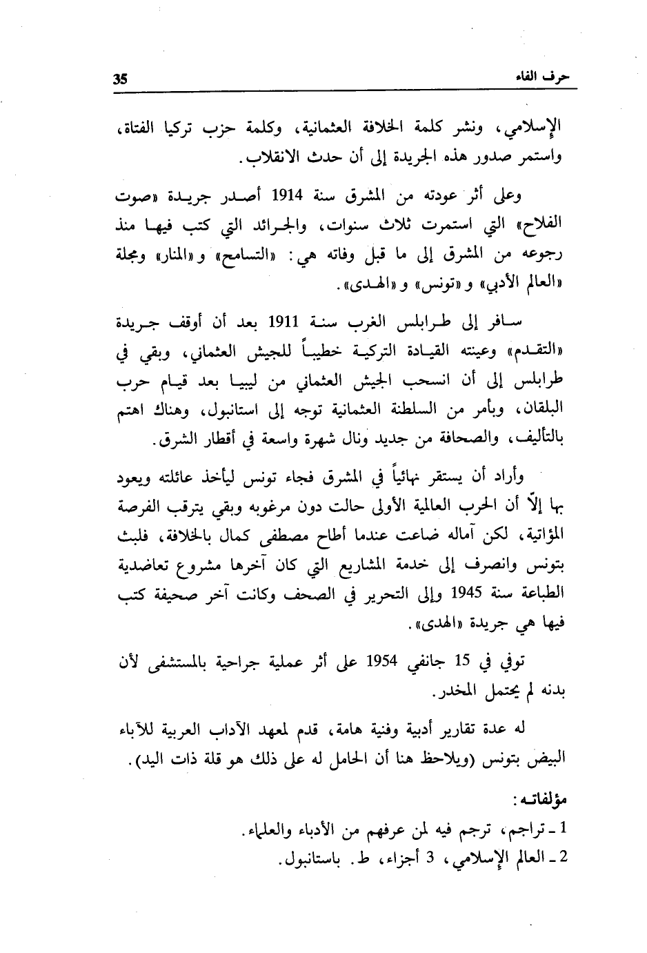 الإسلامي، ونشر كلمة الخلافة العثمانية، وكلمة حزب تركيا الفتاة، واستمر صدور هذه الجريدة إلى أن حدث الانقلاب.
