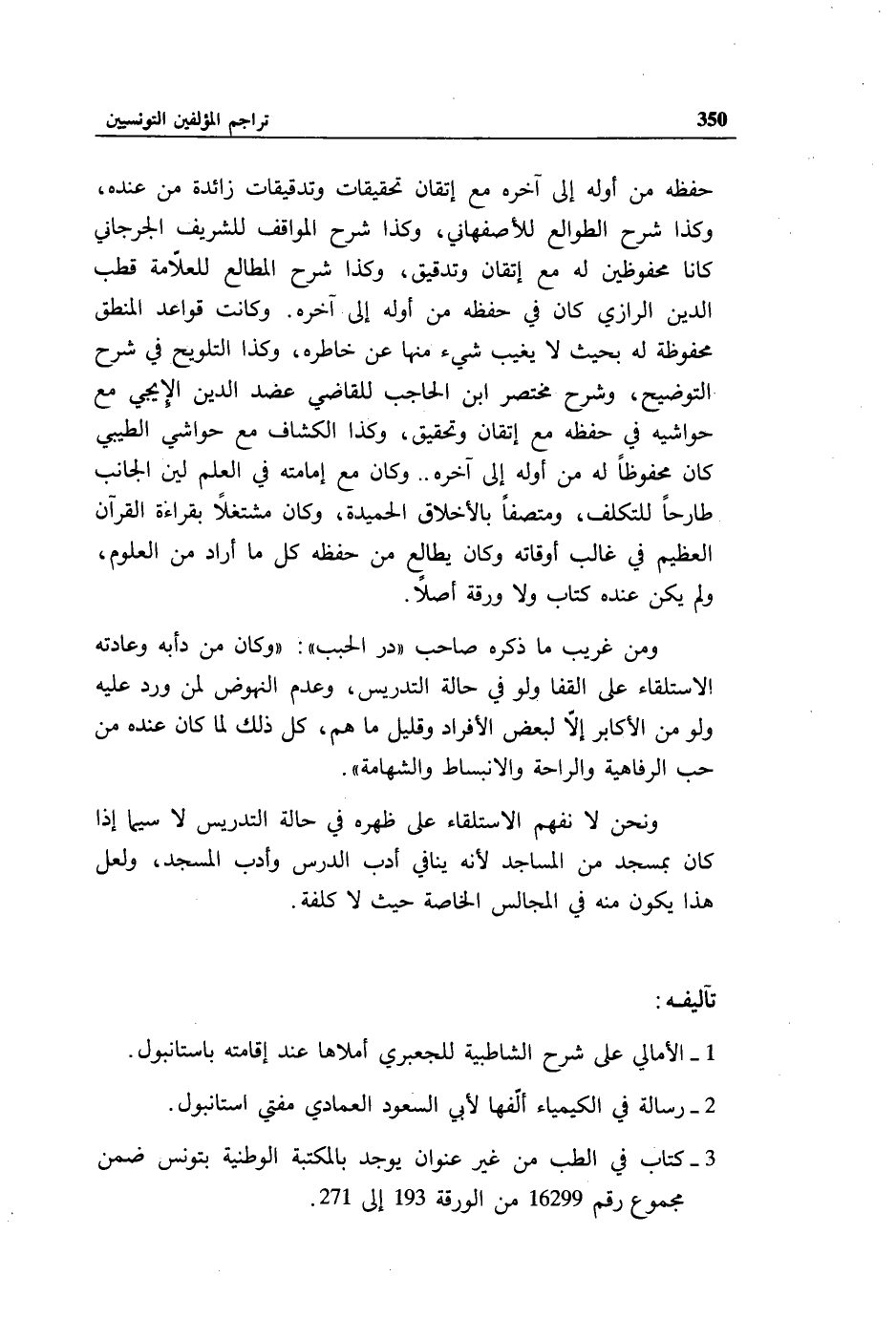 3 - كتاب في الطب من غير عنوان يوجد بالمكتبة الوطنية بتونس ضمن مجموع رقم 16299 من الورقة 193 إلى 271.