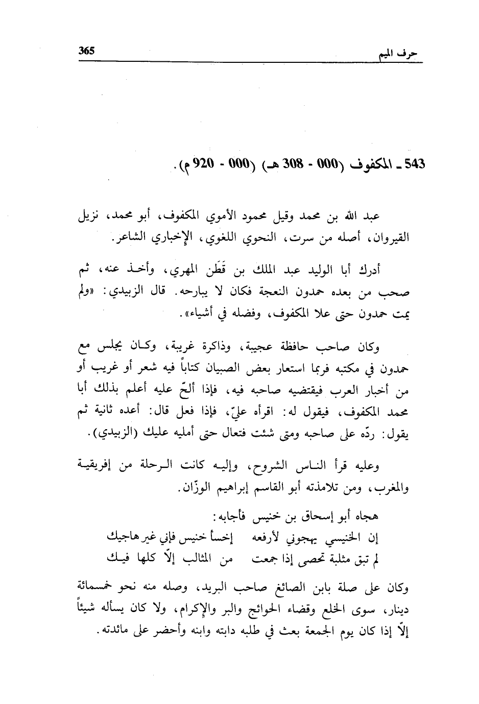 543 - المكفوف (000 - 308 هـ) (000 - 920 م).