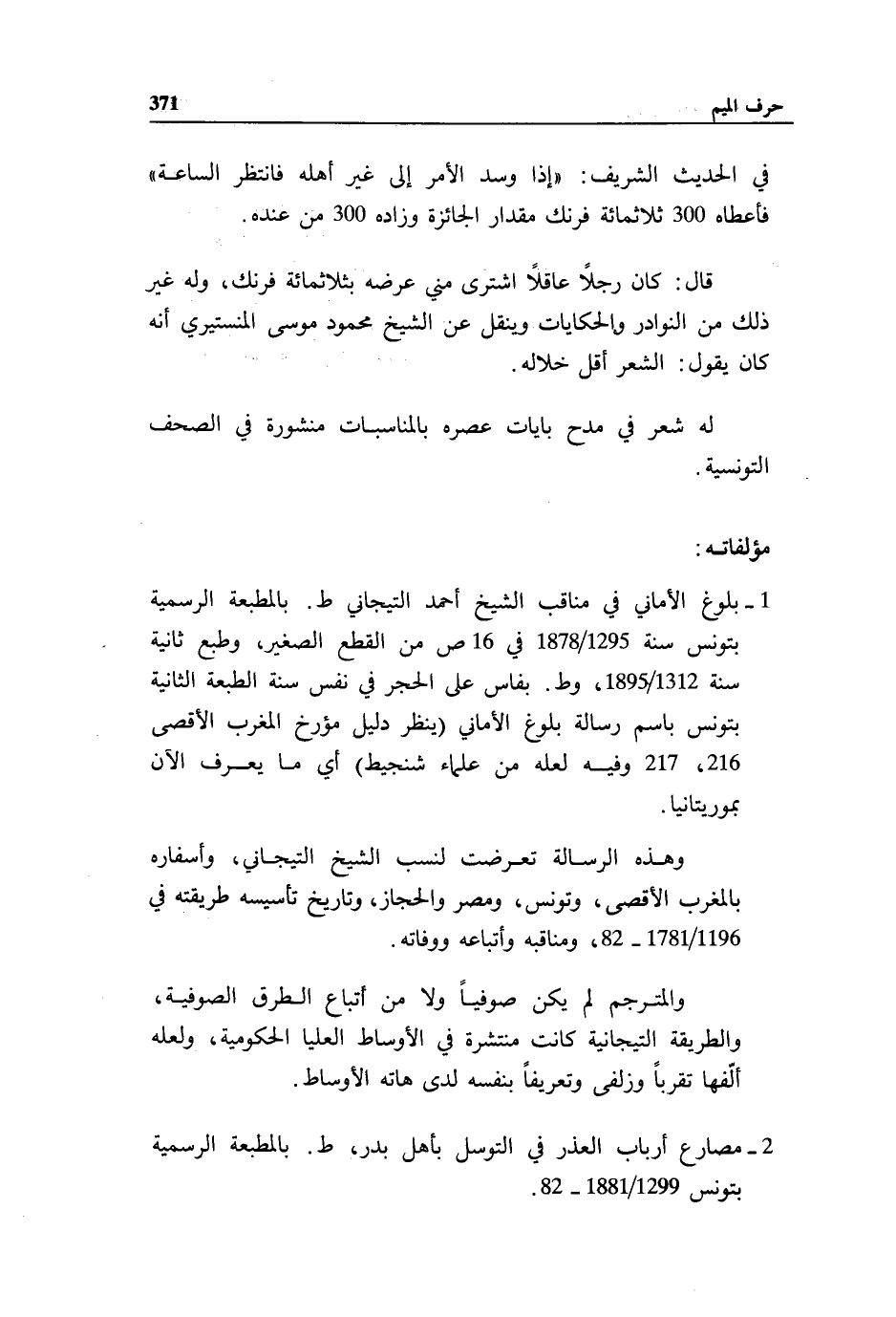 2 - مصارع أرباب العذر في التوسل بأهل بدر، ط. بالمطبعة الرسمية بتونس 1299/ 1881 - 82.