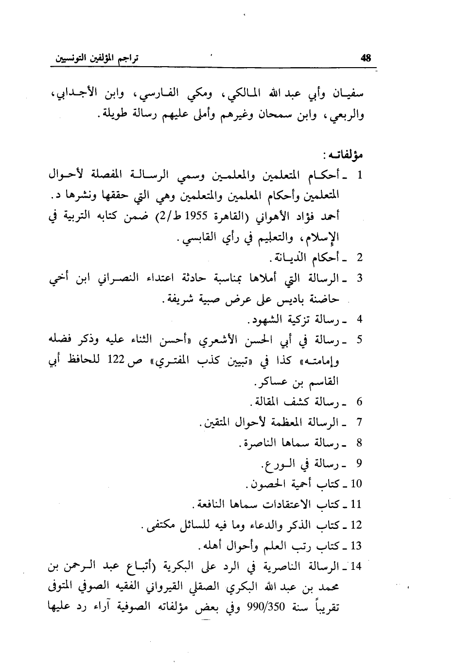 أحمد فؤاد الأهواني (القاهرة 1955 ط 2/) ضمن كتابه التربية في الإسلام، والتعليم في رأي القابسي.