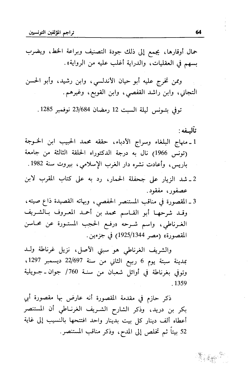 توفي بتونس ليلة السبت 12 رمضان 684/ 23 نوفمبر 1285.