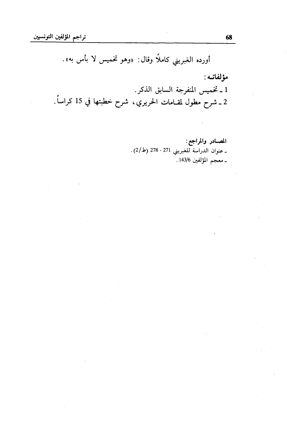 - معجم المؤلفين 6/ 143.