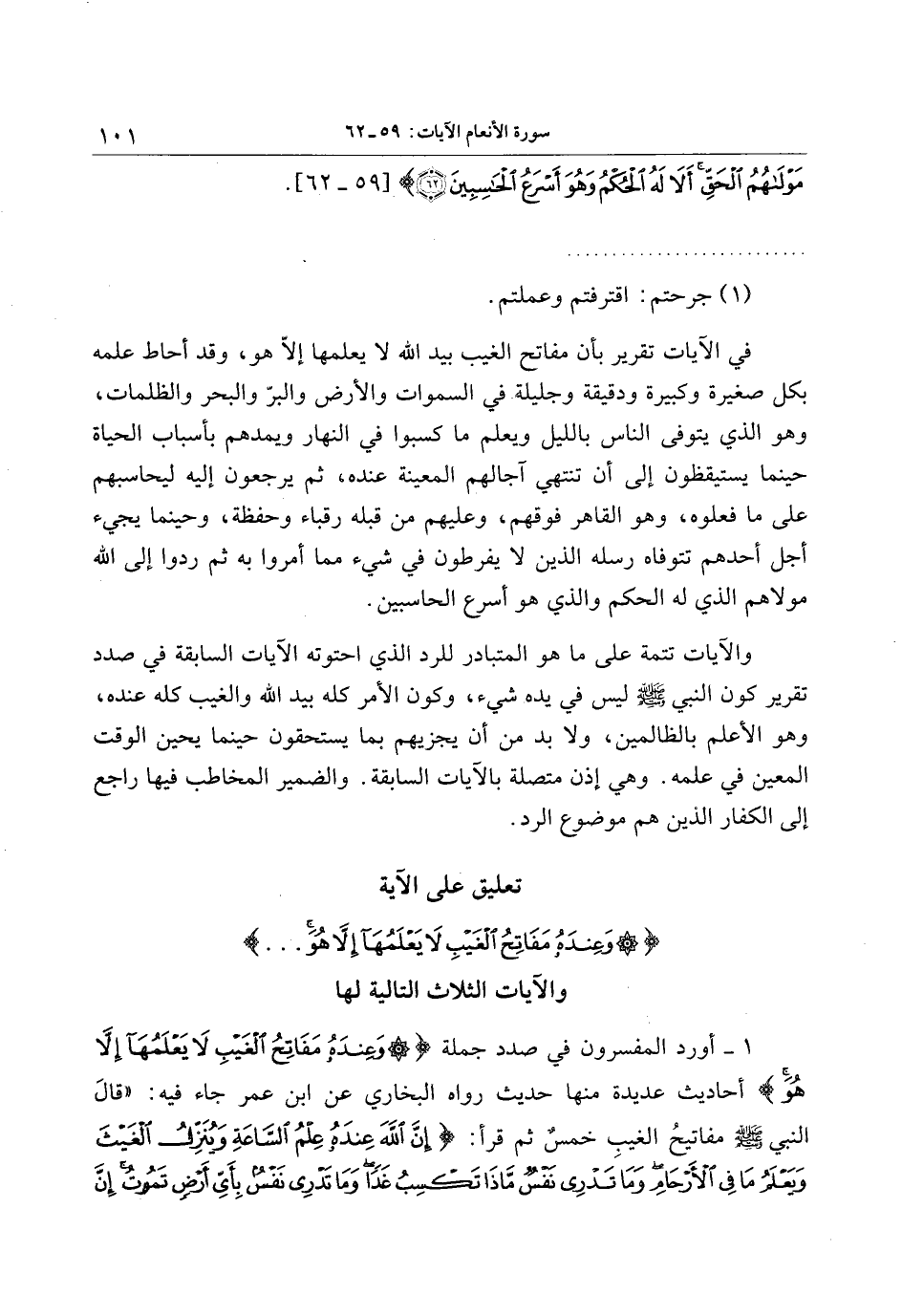تعليق على الآية وَعِنْدَهُ مَفاتِحُ الْغَيْبِ لا يَعْلَمُها إِلَّا هُوَ ... والآيات الثلاث التالية لها