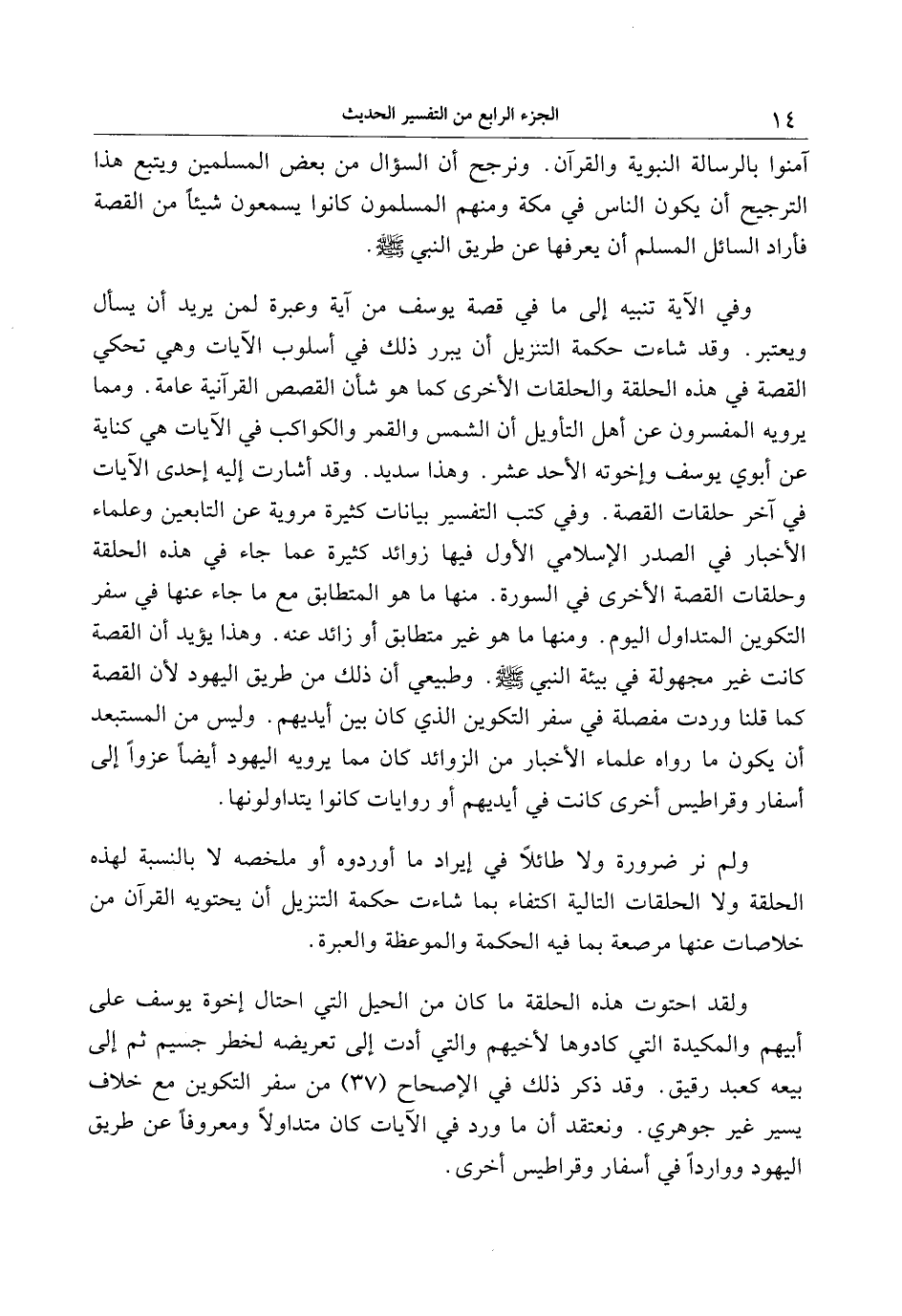 ولم نر ضرورة ولا طائلا في إيراد ما أوردوه أو ملخصه لا بالنسبة لهذه الحلقة ولا الحلقات التالية اكتفاء بما شاءت حكمة التنزيل أن يحتويه القرآن من خلاصات عنها مرصعة بما فيه الحكمة والموعظة والعبرة.