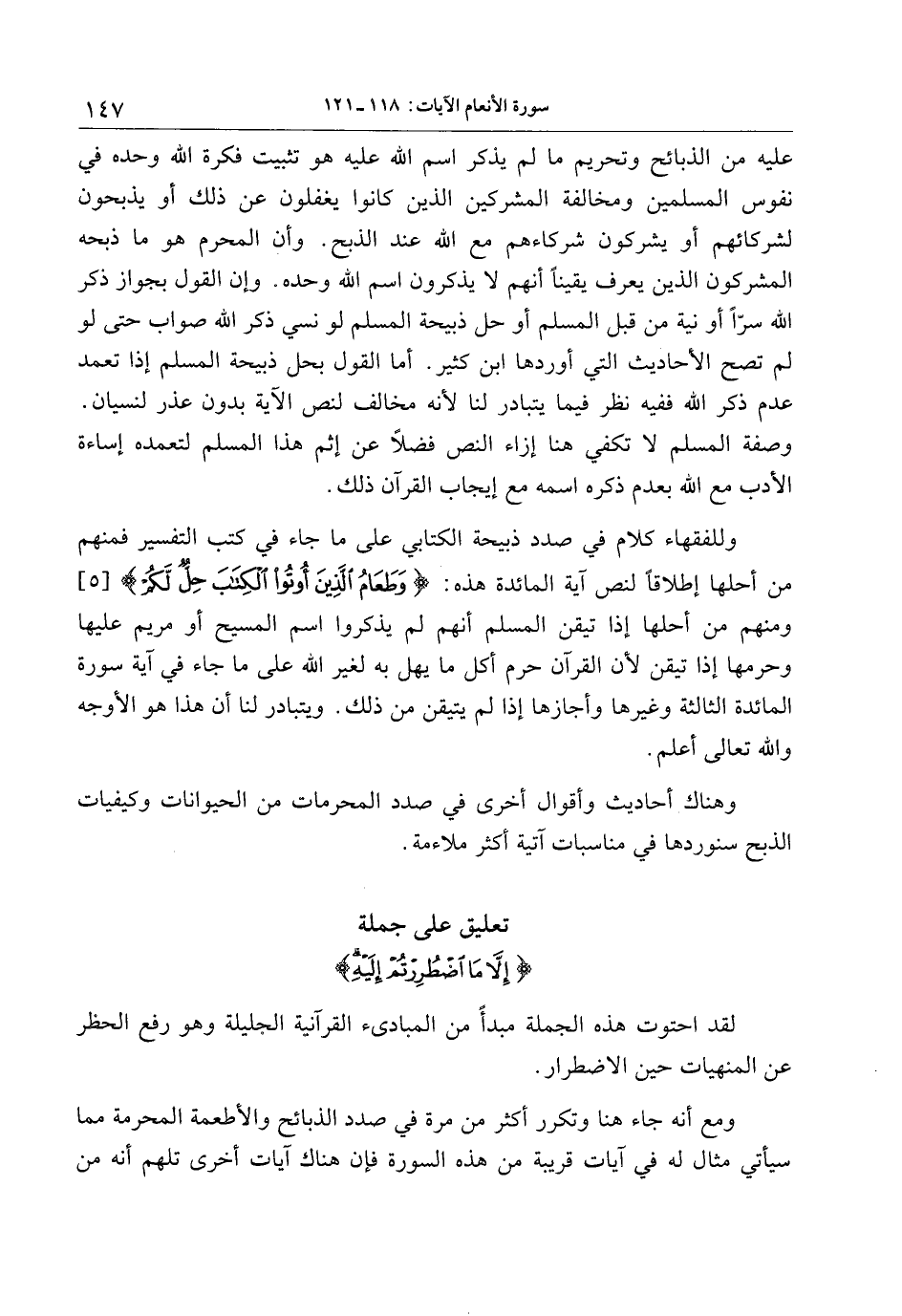 ومع أنه جاء هنا وتكرر أكثر من مرة في صدد الذبائح والأطعمة المحرمة مما سيأتي مثال له في آيات قريبة من هذه السورة فإن هناك آيات أخرى تلهم أنه من