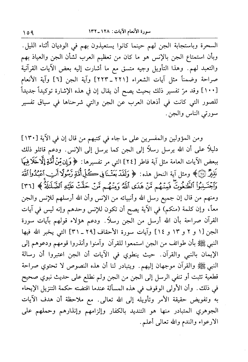 ومن المؤولين والمفسرين على ما جاء في كتبهم من قال إن في الآية [130] دليلا على أن الله يرسل رسلا إلى الجن كما يرسل إلى الإنس. ودعم قائلو ذلك ببعض الآيات العامة مثل آية فاطر [24] التي مر تفسيرها: وَإِنْ مِنْ أُمَّةٍ إِلَّا خَلا فِيها نَذِيرٌ (24) ومثل آية النحل هذه: وَلَقَدْ بَعَثْنا فِي كُلِّ أُمَّةٍ رَسُولًا أَنِ اعْبُدُوا اللَّهَ وَاجْتَنِبُوا الطَّاغُوتَ فَمِنْهُمْ مَنْ هَدَى اللَّهُ وَمِنْهُمْ مَنْ حَقَّتْ عَلَيْهِ الضَّلالَةُ [36] ومنهم من قال إن جميع رسل الله وأنبيائه من الإنس وأن الله أرسلهم للإنس والجن معا، وإن كلمة (منكم) في الآية يصح أن تكون للإنس وحدهم وإنه ليس في آيات القرآن صراحة بأن الله أرسل من الجن رسلا. ودعم هؤلاء قولهم بآيات سورة الجن [1 و 2 و 13 و 14] وآيات سورة الأحقاف [29- 31] التي يخبر الله فيها النبي صلى الله عليه وسلم بأن طوائف من الجن استمعوا للقرآن وآمنوا وأنذروا قومهم ودعوهم إلى الإيمان بالنبي والقرآن. حيث ينطوي في الآيات أن الجن اعتبروا أن رسالة النبي صلى الله عليه وسلم والقرآن موجهان إليهم. ويتبادر لنا أن هذه النصوص لا تحتوي صراحة قطعية تثبت أو تنفي الرسل إلى الجن من الجن ولم نطلع على حديث نبوي صحيح في ذلك. وأن الأولى الوقوف في هذه المسألة عند ما اقتضته حكمة التنزيل الإيحاء به وتفويض حقيقة الأمر وتأويله إلى الله تعالى. مع ملاحظة أن هدف الآيات الجوهري المتبادر منها هو التنديد بالكفار وإلزامهم وإنذارهم وحملهم على الارعواء والندم والله تعالى أعلم.