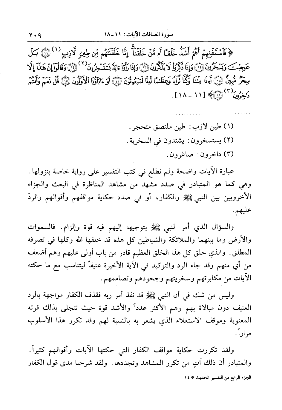 فَاسْتَفْتِهِمْ أَهُمْ أَشَدُّ خَلْقاً أَمْ مَنْ خَلَقْنا إِنَّا خَلَقْناهُمْ مِنْ طِينٍ لازِبٍ (11) بَلْ عَجِبْتَ وَيَسْخَرُونَ (12) وَإِذا ذُكِّرُوا لا يَذْكُرُونَ (13) وَإِذا رَأَوْا آيَةً يَسْتَسْخِرُونَ (14) وَقالُوا إِنْ هذا إِلاَّ سِحْرٌ مُبِينٌ (15)