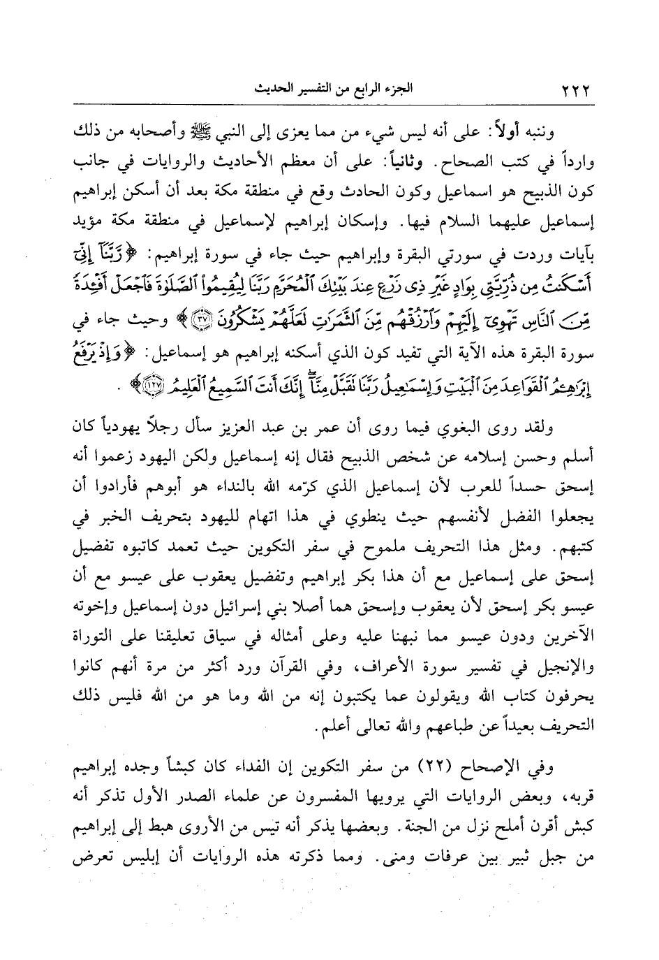 ولقد روى البغوي فيما روى أن عمر بن عبد العزيز سأل رجلا يهوديا كان أسلم وحسن إسلامه عن شخص الذبيح فقال إنه إسماعيل ولكن اليهود زعموا أنه إسحق حسدا للعرب لأن إسماعيل الذي كرّمه الله بالنداء هو أبوهم فأرادوا أن يجعلوا الفضل لأنفسهم حيث ينطوي في هذا اتهام لليهود بتحريف الخبر في كتبهم. ومثل هذا التحريف ملموح في سفر التكوين حيث تعمد كاتبوه تفضيل إسحق على إسماعيل مع أن هذا بكر إبراهيم وتفضيل يعقوب على عيسو مع أن عيسو بكر إسحق لأن يعقوب وإسحق هما أصلا بني إسرائيل دون إسماعيل وإخوته الآخرين ودون عيسو مما نبهنا عليه وعلى أمثاله في سياق تعليقنا على التوراة والإنجيل في تفسير سورة الأعراف، وفي القرآن ورد أكثر من مرة أنهم كانوا يحرفون كتاب الله ويقولون عما يكتبون إنه من الله وما هو من الله فليس ذلك التحريف بعيدا عن طباعهم والله تعالى أعلم.