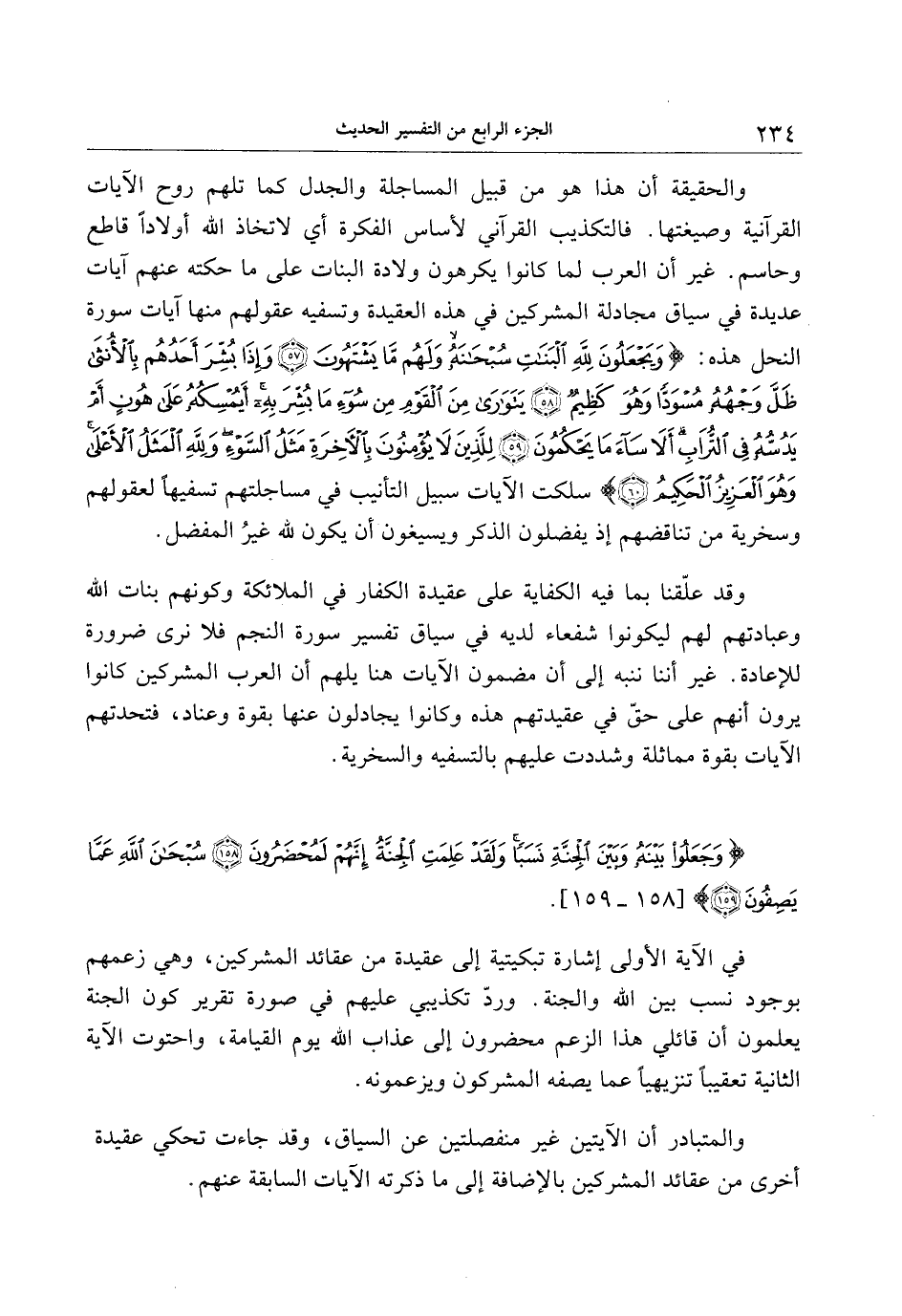 والحقيقة أن هذا هو من قبيل المساجلة والجدل كما تلهم روح الآيات القرآنية وصيغتها. فالتكذيب القرآني لأساس الفكرة أي لاتخاذ الله أولادا قاطع وحاسم. غير أن العرب لما كانوا يكرهون ولادة البنات على ما حكته عنهم آيات عديدة في سياق مجادلة المشركين في هذه العقيدة وتسفيه عقولهم منها آيات سورة النحل هذه: وَيَجْعَلُونَ لِلَّهِ الْبَناتِ سُبْحانَهُ وَلَهُمْ ما يَشْتَهُونَ (57) وَإِذا بُشِّرَ أَحَدُهُمْ بِالْأُنْثى ظَلَّ وَجْهُهُ مُسْوَدًّا وَهُوَ كَظِيمٌ (58) يَتَوارى مِنَ الْقَوْمِ مِنْ سُوءِ ما بُشِّرَ بِهِ أَيُمْسِكُهُ عَلى هُونٍ أَمْ يَدُسُّهُ فِي التُّرابِ أَلا ساءَ ما يَحْكُمُونَ (59) لِلَّذِينَ لا يُؤْمِنُونَ بِالْآخِرَةِ مَثَلُ السَّوْءِ وَلِلَّهِ الْمَثَلُ الْأَعْلى وَهُوَ الْعَزِيزُ الْحَكِيمُ (60) سلكت الآيات سبيل التأنيب في مساجلتهم تسفيها لعقولهم وسخرية من تناقضهم إذ يفضلون الذكر ويسيغون أن يكون لله غير المفضل.
