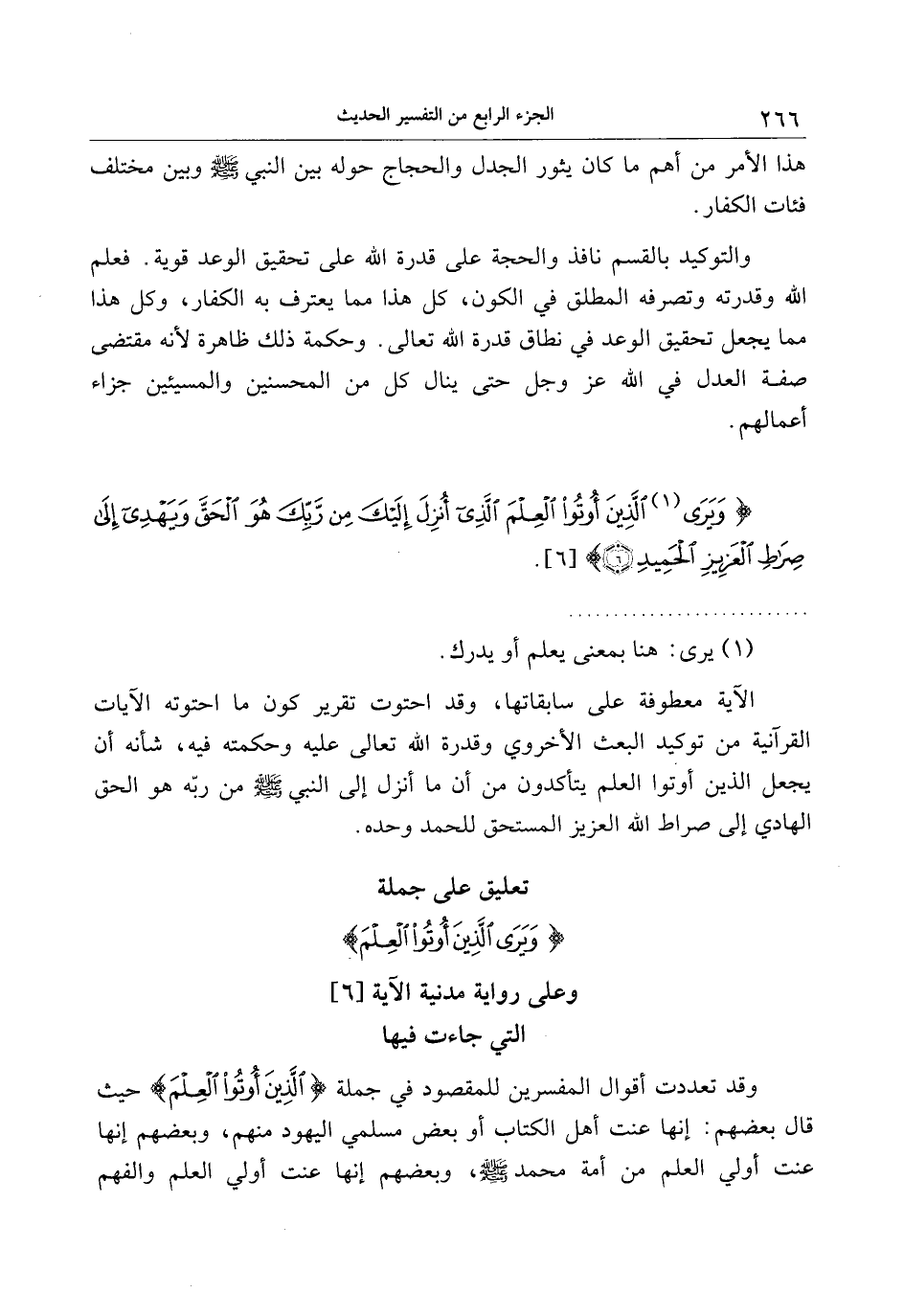 وَيَرَى الَّذِينَ أُوتُوا الْعِلْمَ الَّذِي أُنْزِلَ إِلَيْكَ مِنْ رَبِّكَ هُوَ الْحَقَّ وَيَهْدِي إِلى صِراطِ الْعَزِيزِ الْحَمِيدِ (6)