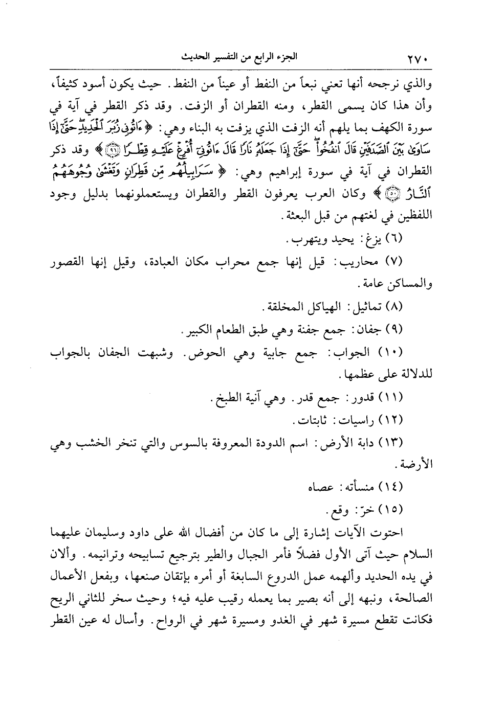 (10) الجواب: جمع جابية وهي الحوض. وشبهت الجفان بالجواب للدلالة على عظمها.
