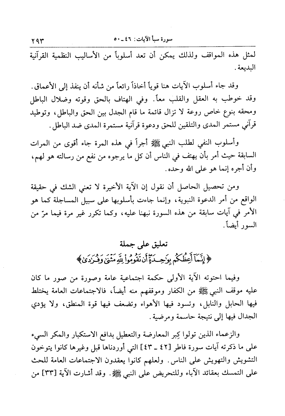 تعليق على جملة إِنَّما أَعِظُكُمْ بِواحِدَةٍ أَنْ تَقُومُوا لِلَّهِ مَثْنى وَفُرادى