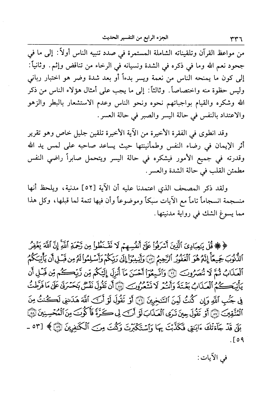 ولقد ذكر المصحف الذي اعتمدنا عليه أن الآية [52] مدنية، ويلحظ أنها منسجمة انسجاما تاما مع الآيات سبكا وموضوعا وأن فيها تتمة لما قبلها، وكل هذا مما يسوغ الشك في رواية مدنيتها.