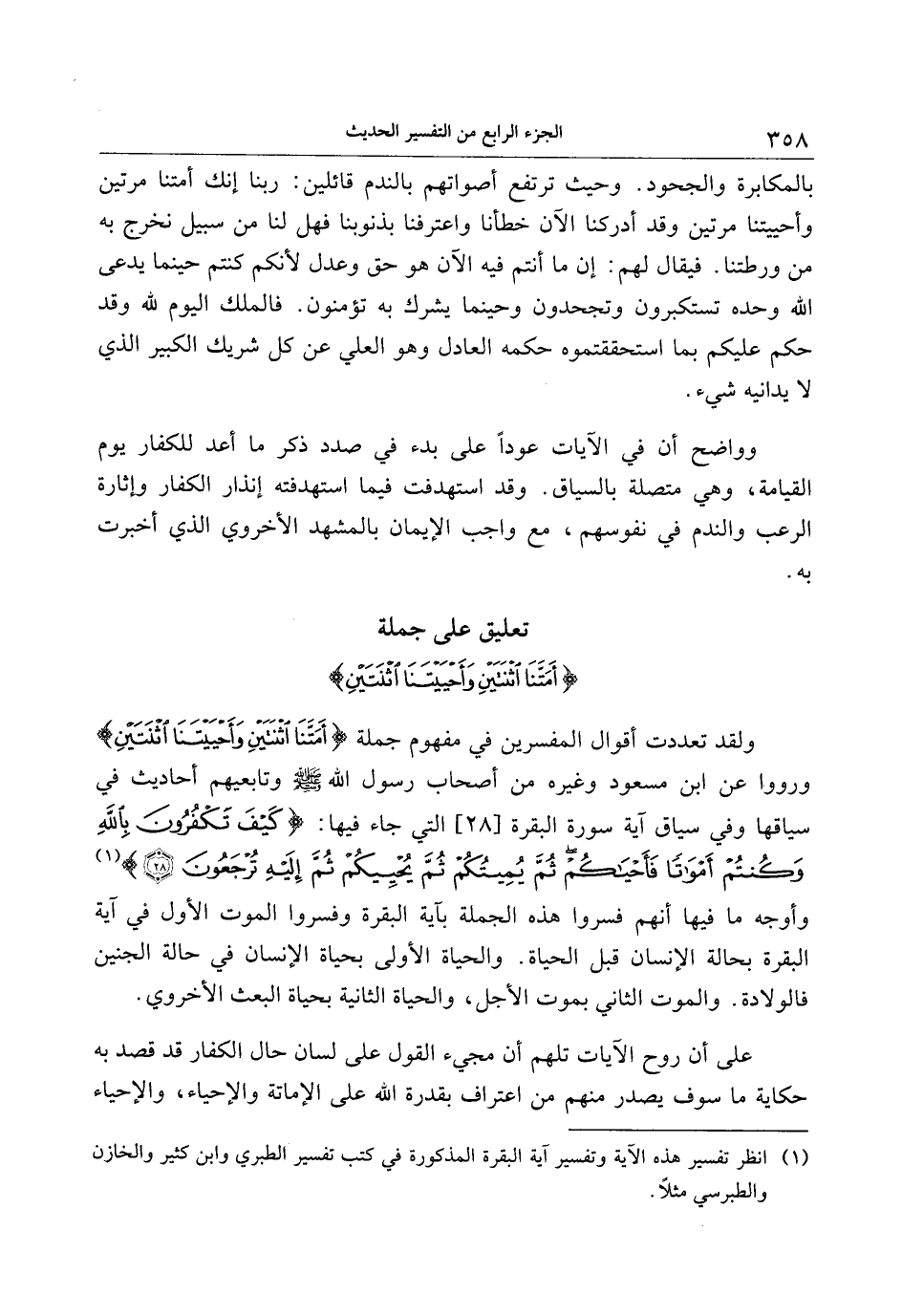 تعليق على جملة أَمَتَّنَا اثْنَتَيْنِ وَأَحْيَيْتَنَا اثْنَتَيْنِ