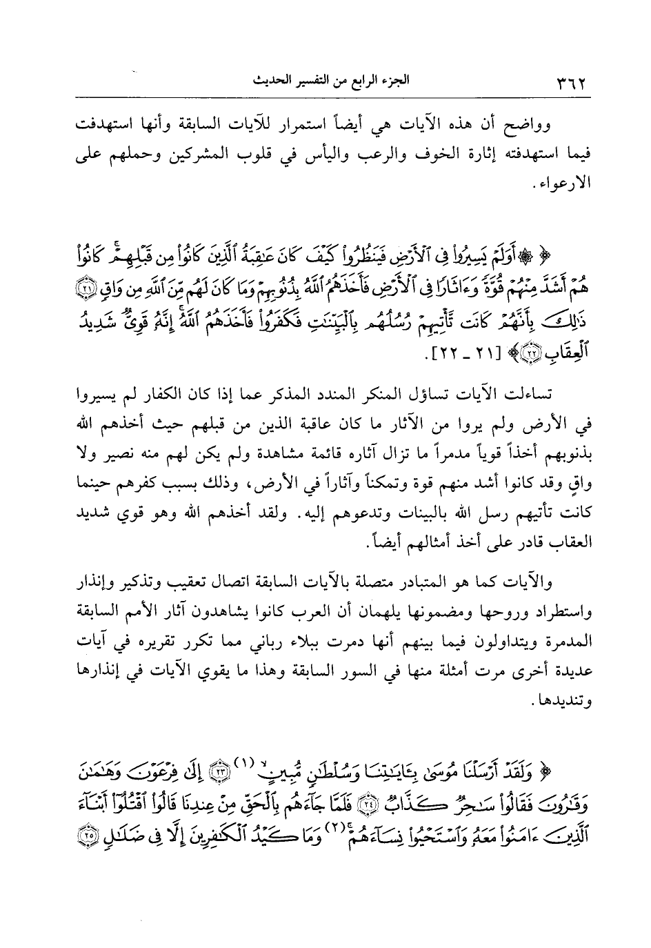 أَوَلَمْ يَسِيرُوا فِي الْأَرْضِ فَيَنْظُرُوا كَيْفَ كانَ عاقِبَةُ الَّذِينَ كانُوا مِنْ قَبْلِهِمْ كانُوا هُمْ أَشَدَّ مِنْهُمْ قُوَّةً وَآثاراً فِي الْأَرْضِ فَأَخَذَهُمُ اللَّهُ بِذُنُوبِهِمْ وَما كانَ لَهُمْ مِنَ اللَّهِ مِنْ واقٍ (21) ذلِكَ بِأَنَّهُمْ كانَتْ تَأْتِيهِمْ رُسُلُهُمْ بِالْبَيِّناتِ فَكَفَرُوا فَأَخَذَهُمُ اللَّهُ إِنَّهُ قَوِيٌّ شَدِيدُ الْعِقابِ (22)
