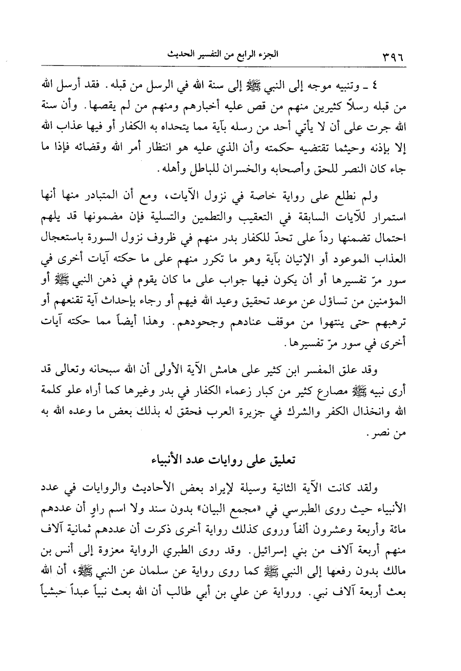 ولقد كانت الآية الثانية وسيلة لإيراد بعض الأحاديث والروايات في عدد الأنبياء حيث روى الطبرسي في «مجمع البيان» بدون سند ولا اسم راو أن عددهم مائة وأربعة وعشرون ألفا وروى كذلك رواية أخرى ذكرت أن عددهم ثمانية آلاف منهم أربعة آلاف من بني إسرائيل. وقد روى الطبري الرواية معزوة إلى أنس بن مالك بدون رفعها إلى النبي صلى الله عليه وسلم كما روى رواية عن سلمان عن النبي صلى الله عليه وسلم، أن الله بعث أربعة آلاف نبي. ورواية عن علي بن أبي طالب أن الله بعث نبيا عبدا حبشيا