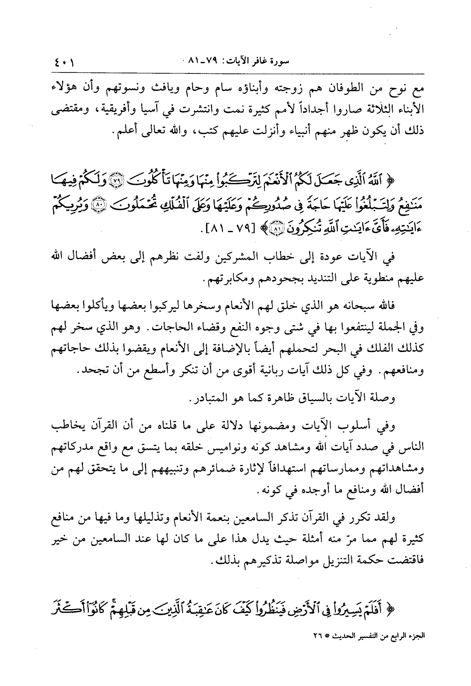 اللَّهُ الَّذِي جَعَلَ لَكُمُ الْأَنْعامَ لِتَرْكَبُوا مِنْها وَمِنْها تَأْكُلُونَ (79) وَلَكُمْ فِيها مَنافِعُ وَلِتَبْلُغُوا عَلَيْها حاجَةً فِي صُدُورِكُمْ وَعَلَيْها وَعَلَى الْفُلْكِ تُحْمَلُونَ (80) وَيُرِيكُمْ آياتِهِ فَأَيَّ آياتِ اللَّهِ تُنْكِرُونَ (81)
