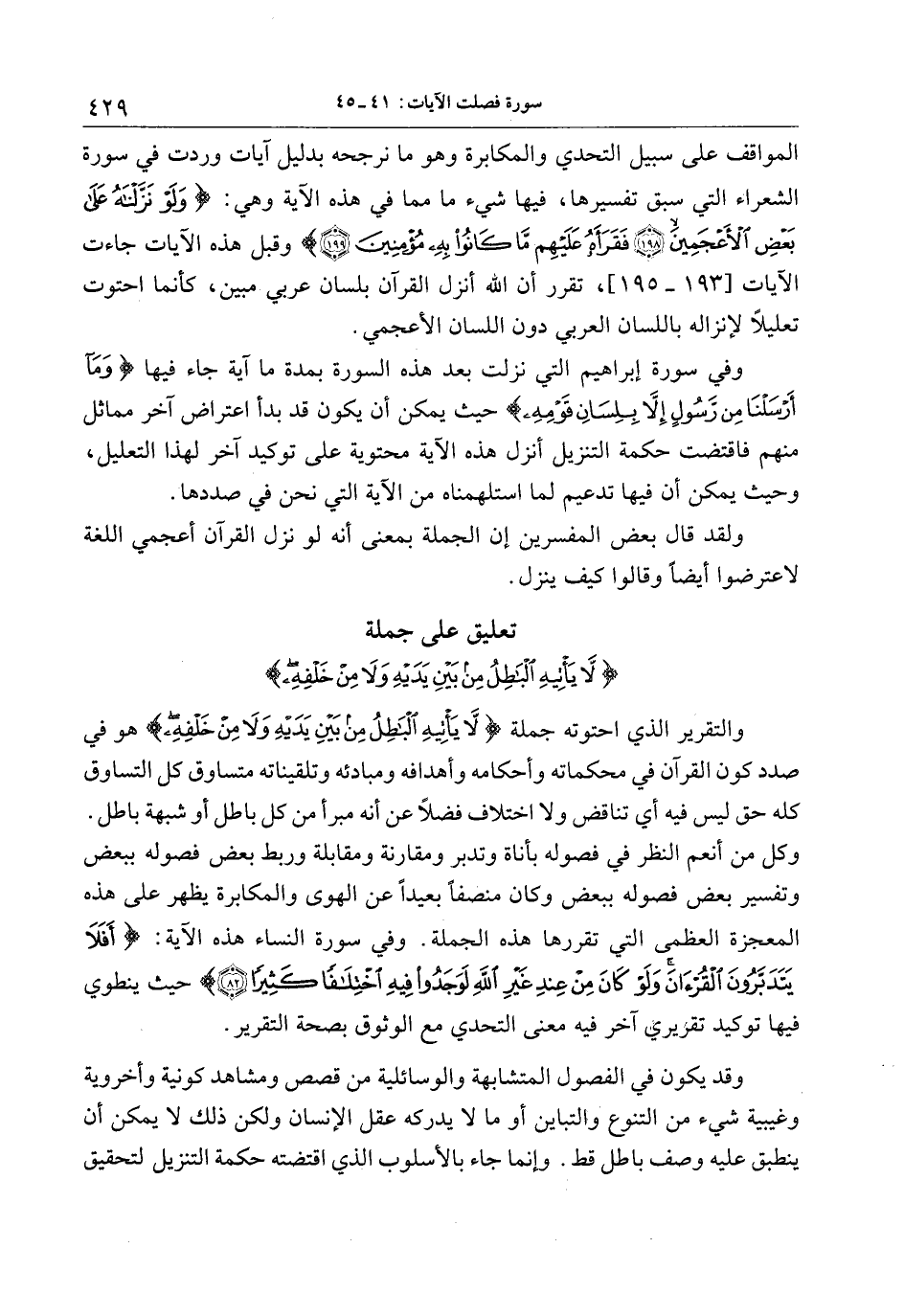 تعليق على جملة لا يَأْتِيهِ الْباطِلُ مِنْ بَيْنِ يَدَيْهِ وَلا مِنْ خَلْفِهِ