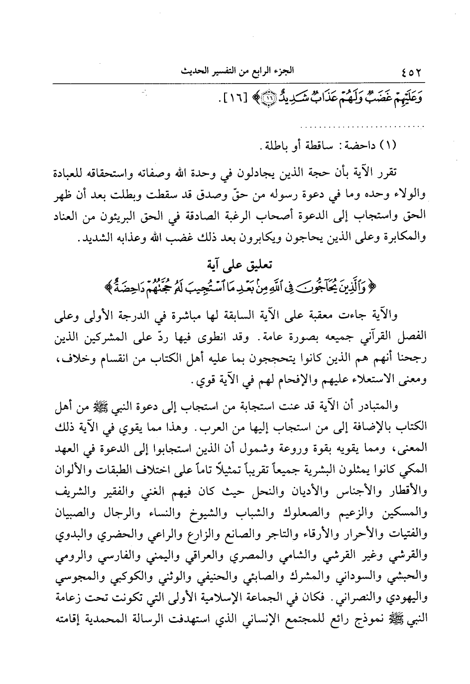 تعليق على آية وَالَّذِينَ يُحَاجُّونَ فِي اللَّهِ مِنْ بَعْدِ ما اسْتُجِيبَ لَهُ حُجَّتُهُمْ داحِضَةٌ