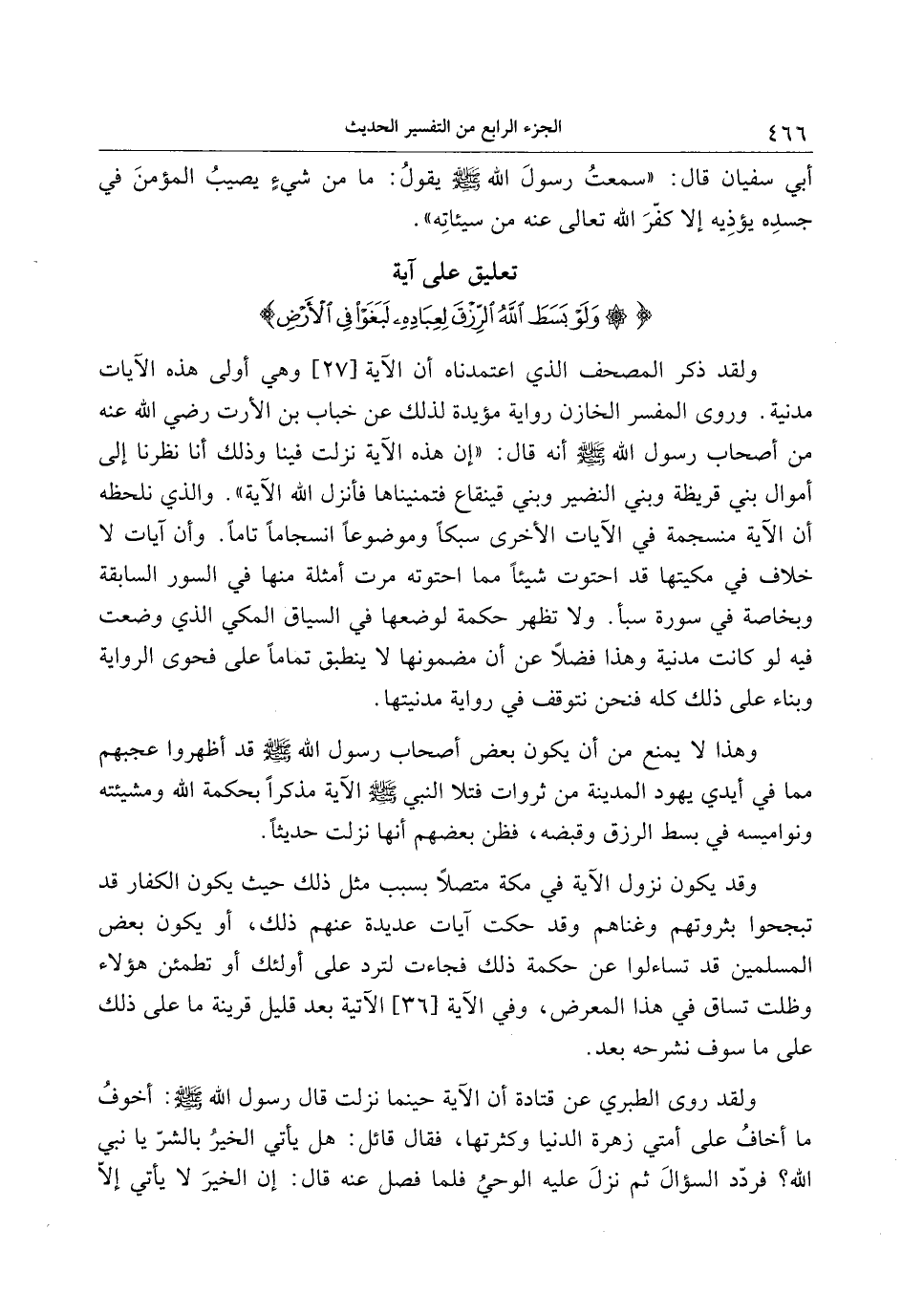 وهذا لا يمنع من أن يكون بعض أصحاب رسول الله صلى الله عليه وسلم قد أظهروا عجبهم مما في أيدي يهود المدينة من ثروات فتلا النبي صلى الله عليه وسلم الآية مذكرا بحكمة الله ومشيئته ونواميسه في بسط الرزق وقبضه، فظن بعضهم أنها نزلت حديثا.