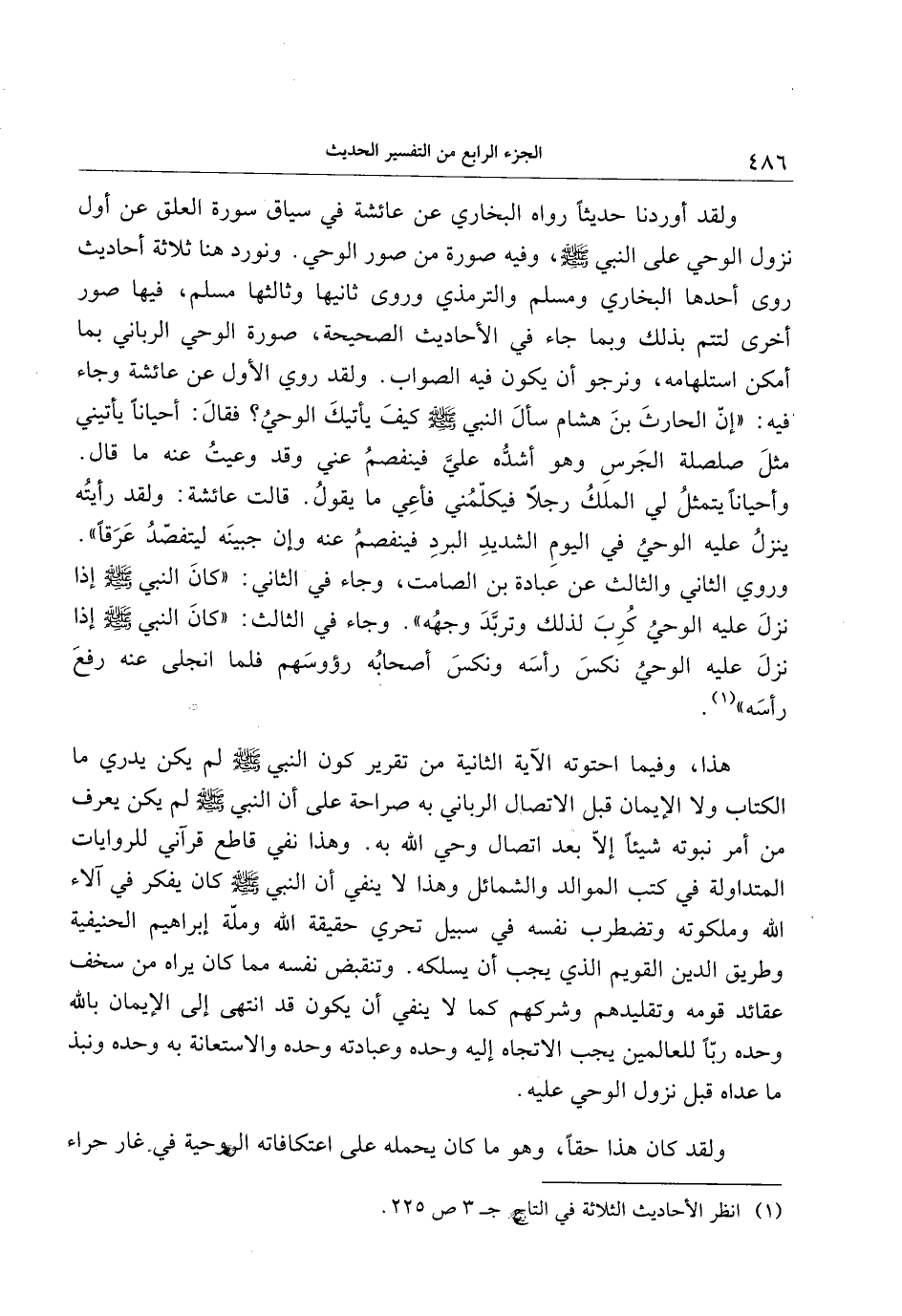 ولقد أوردنا حديثا رواه البخاري عن عائشة في سياق سورة العلق عن أول نزول الوحي على النبي صلّى الله عليه وسلم، وفيه صورة من صور الوحي. ونورد هنا ثلاثة أحاديث روى أحدها البخاري ومسلم والترمذي وروى ثانيها وثالثها مسلم، فيها صور أخرى لتتم بذلك وبما جاء في الأحاديث الصحيحة، صورة الوحي الرباني بما أمكن استلهامه، ونرجو أن يكون فيه الصواب. ولقد روي الأول عن عائشة وجاء فيه: «إنّ الحارث بن هشام سأل النبي صلّى الله عليه وسلم كيف يأتيك الوحي؟ فقال: أحيانا يأتيني مثل صلصلة الجرس وهو أشدّه عليّ فينفصم عني وقد وعيت عنه ما قال.