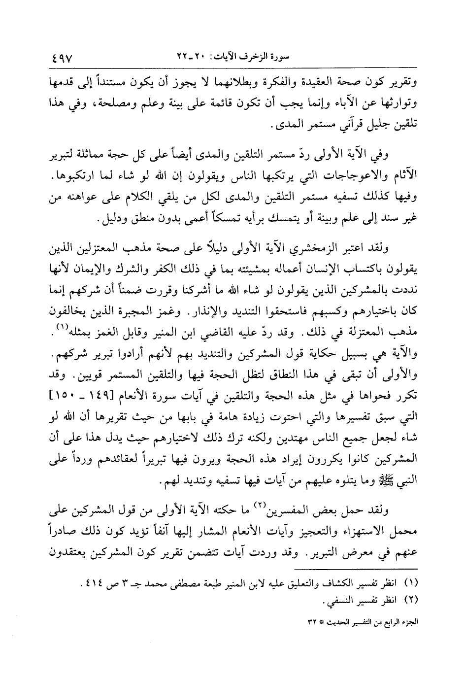 (1) انظر تفسير الكشاف والتعليق عليه لابن المنير طبعة مصطفى محمد ج 3 ص 414.