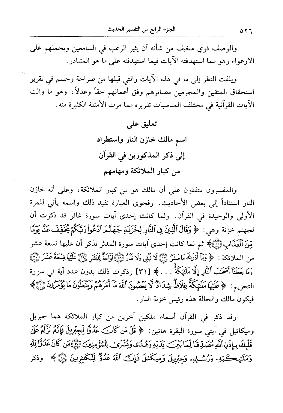 تعليق على اسم مالك خازن النار واستطراد إلى ذكر المذكورين في القرآن من كبار الملائكة ومهامهم