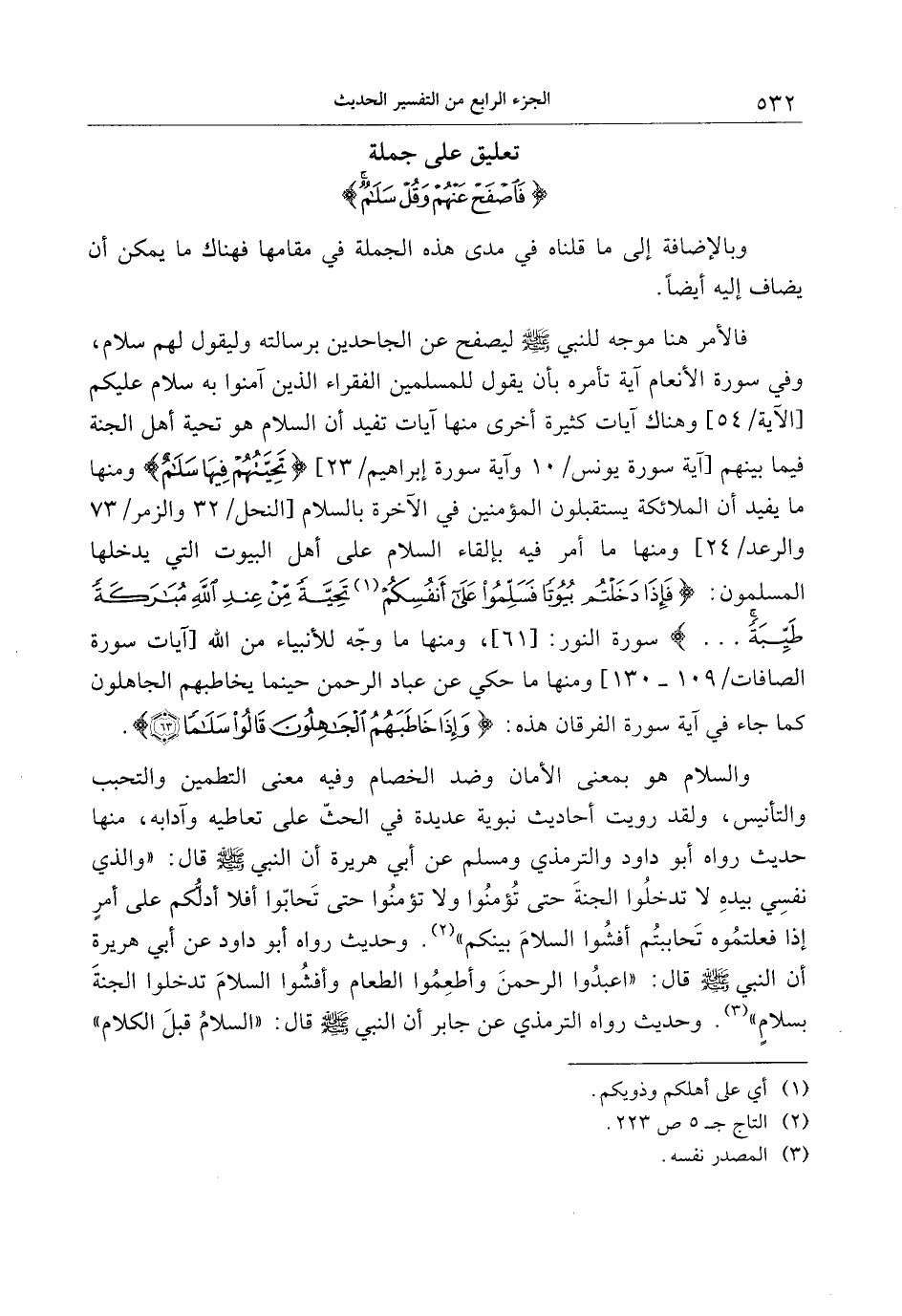 تعليق على جملة فَاصْفَحْ عَنْهُمْ وَقُلْ سَلامٌ