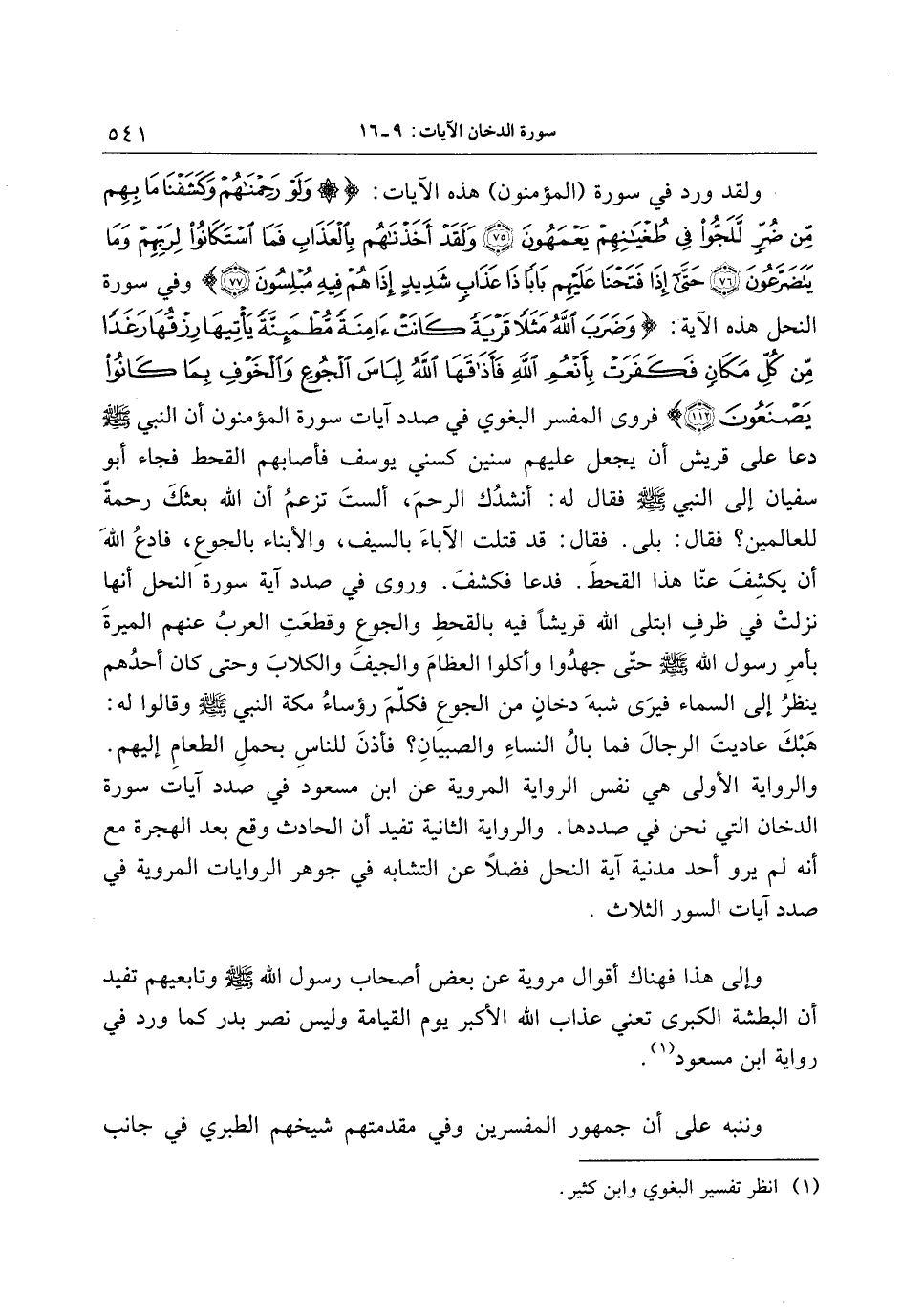 والرواية الأولى هي نفس الرواية المروية عن ابن مسعود في صدد آيات سورة الدخان التي نحن في صددها. والرواية الثانية تفيد أن الحادث وقع بعد الهجرة مع أنه لم يرو أحد مدنية آية النحل فضلا عن التشابه في جوهر الروايات المروية في صدد آيات السور الثلاث.