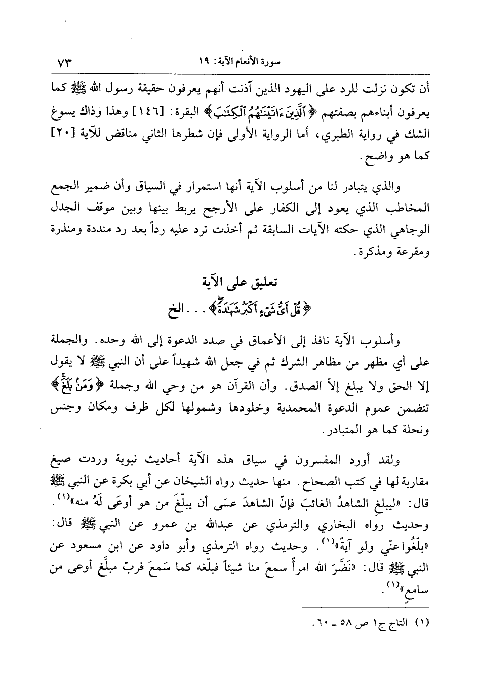 تعليق على الآية قُلْ أَيُّ شَيْءٍ أَكْبَرُ شَهادَةً ... إلخ