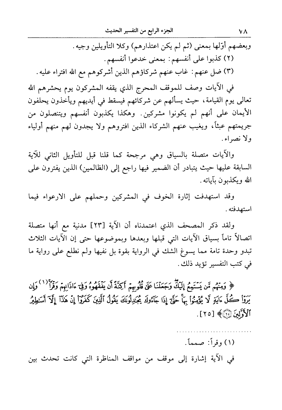 وَمِنْهُمْ مَنْ يَسْتَمِعُ إِلَيْكَ وَجَعَلْنا عَلى قُلُوبِهِمْ أَكِنَّةً أَنْ يَفْقَهُوهُ وَفِي آذانِهِمْ وَقْراً وَإِنْ يَرَوْا كُلَّ آيَةٍ لا يُؤْمِنُوا بِها حَتَّى إِذا جاؤُكَ يُجادِلُونَكَ يَقُولُ الَّذِينَ كَفَرُوا إِنْ هذا إِلاَّ أَساطِيرُ الْأَوَّلِينَ (25)