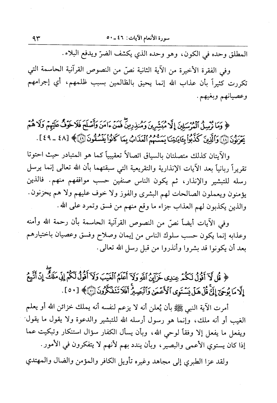 وَما نُرْسِلُ الْمُرْسَلِينَ إِلاَّ مُبَشِّرِينَ وَمُنْذِرِينَ فَمَنْ آمَنَ وَأَصْلَحَ فَلا خَوْفٌ عَلَيْهِمْ وَلا هُمْ يَحْزَنُونَ (48) وَالَّذِينَ كَذَّبُوا بِآياتِنا يَمَسُّهُمُ الْعَذابُ بِما كانُوا يَفْسُقُونَ (49)