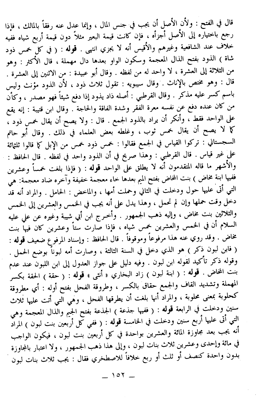 قَوْلُهُ: «فِي كُلِّ خَمْسِ ذَوْدٍ شَاةٌ» الذَّوْدُ بِفَتْحِ الذَّالِ الْمُعْجَمَةِ وَسُكُونِ الْوَاوِ بَعْدَهَا دَالٌ مُهْمَلَةٌ، قَالَ الْأَكْثَرُ: وَهُوَ مِنْ الثَّلَاثَةِ إلَى الْعَشَرَةِ، لَا وَاحِدَ لَهُ مِنْ لَفْظِهِ وَقَالَ أَبُو عُبَيْدَةَ: مِنْ الِاثْنَيْنِ إلَى الْعَشَرَةِ قَالَ: وَهُوَ مُخْتَصٌّ بِالْإِنَاثِ وَقَالَ سِيبَوَيْهِ: تَقُولُ: ثَلَاثُ ذَوْدٍ؛ لِأَنَّ الذَّوْدَ مُؤَنَّثٌ وَلَيْسَ بِاسْمِ كُسِّرَ عَلَيْهِ مُذَكَّرٌ وَقَالَ الْقُرْطُبِيُّ: أَصْلُهُ ذَادَ يَذُودُ إذَا دَفَعَ شَيْئًا فَهُوَ مَصْدَرٌ، وَكَأَنَّ مَنْ كَانَ عِنْدَهُ دَفَعَ عَنْ نَفْسِهِ مَعَرَّةَ الْفَقْرِ وَشِدَّةَ الْفَاقَةِ وَالْحَاجَةِ وَقَالَ ابْنُ قُتَيْبَةَ: إنَّهُ يَقَعُ عَلَى الْوَاحِدِ فَقَطْ، وَأَنْكَرَ أَنْ يُرَادَ بِالذَّوْدِ الْجَمْعُ قَالَ: وَلَا يَصِحُّ أَنْ يُقَالَ خَمْسُ ذَوْدٍ، كَمَا لَا يَصِحُّ أَنْ يُقَالَ خَمْسُ ثَوْبٍ، وَغَلَّطَهُ بَعْضُ الْعُلَمَاءِ فِي ذَلِكَ. وَقَالَ أَبُو حَاتِمِ السِّجِسْتَانِيُّ: تَرَكُوا الْقِيَاسَ فِي الْجَمْعِ فَقَالُوا: خَمْسُ ذَوْدٍ خَمْسٌ مِنْ الْإِبِلِ كَمَا قَالُوا ثَلَثُمِائَةٍ عَلَى غَيْرِ قِيَاسٍ قَالَ الْقُرْطُبِيُّ: وَهَذَا صَرِيحٌ فِي أَنَّ الذَّوْدَ وَاحِدٌ فِي لَفْظِهِ قَالَ الْحَافِظُ: وَالْأَشْهَرُ مَا قَالَهُ الْمُتَقَدِّمُونَ أَنَّهُ لَا يُطْلَقُ عَلَى الْوَاحِدِ
