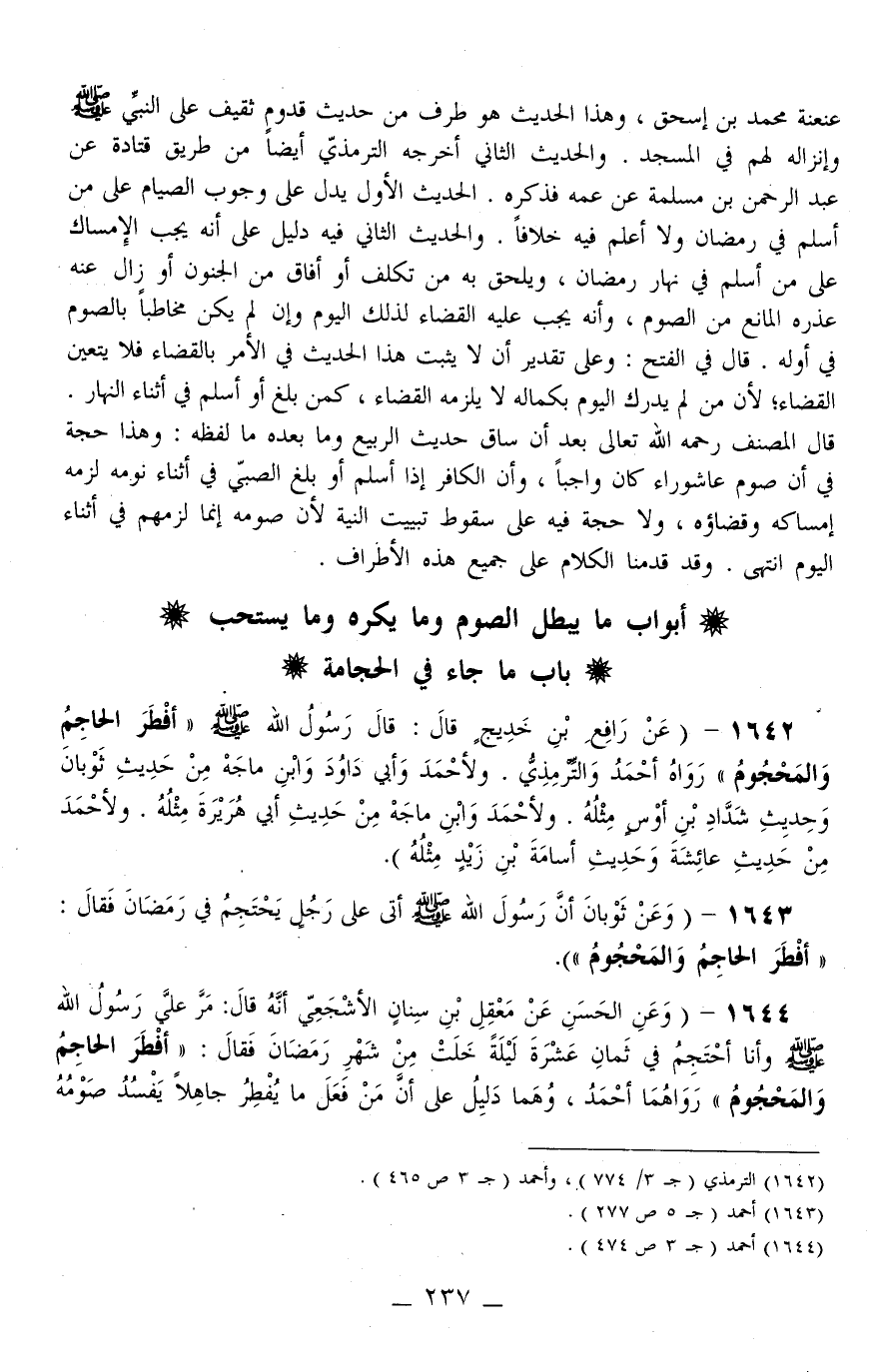 1642 - (عَنْ رَافِعِ بْنِ خَدِيجٍ قَالَ: قَالَ رَسُولُ اللَّهِ - صَلَّى اللَّهُ عَلَيْهِ وَسَلَّمَ - «أَفْطَرَ الْحَاجِمُ وَالْمَحْجُومُ» رَوَاهُ أَحْمَدُ وَالتِّرْمِذِيُّ. وَلِأَحْمَدَ وَأَبِي دَاوُد وَابْنِ مَاجَهْ مِنْ حَدِيثِ ثَوْبَانَ وَحَدِيثِ شَدَّادِ بْنِ أَوْسٍ مِثْلُهُ. وَلِأَحْمَدَ وَابْنِ مَاجَهْ مِنْ حَدِيثِ أَبِي هُرَيْرَةَ مِثْلُهُ. وَلِأَحْمَدَ مِنْ حَدِيثِ عَائِشَةَ وَحَدِيثِ أُسَامَةَ بْنِ زَيْدٍ مِثْلُهُ) .