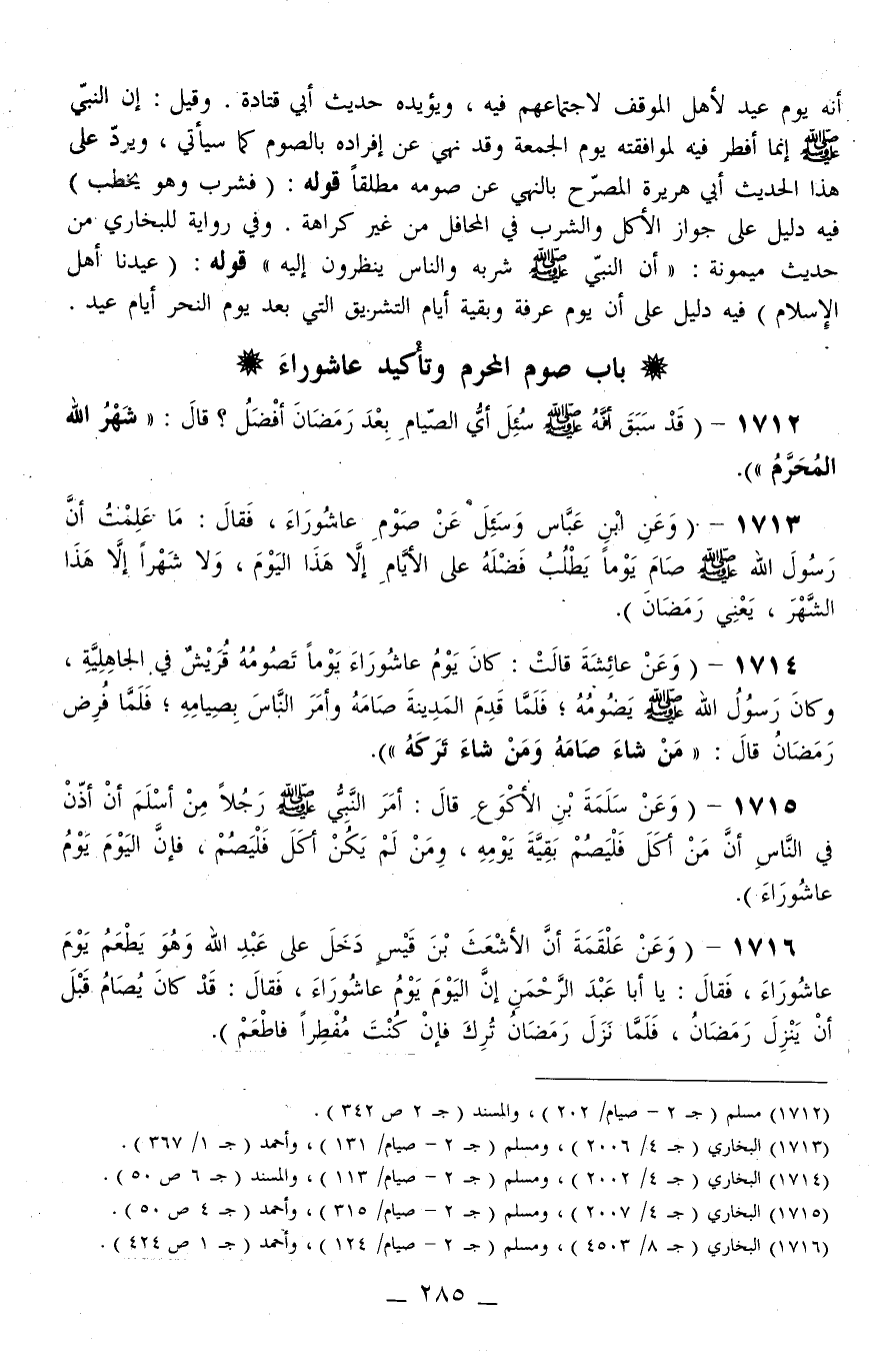 1712 - (قَدْ سَبَقَ «أَنَّهُ - صَلَّى اللَّهُ عَلَيْهِ وَسَلَّمَ - سُئِلَ أَيُّ الصِّيَامِ بَعْدَ رَمَضَانَ أَفْضَلُ؟ قَالَ: شَهْرُ اللَّهِ الْمُحَرَّمُ» ) .