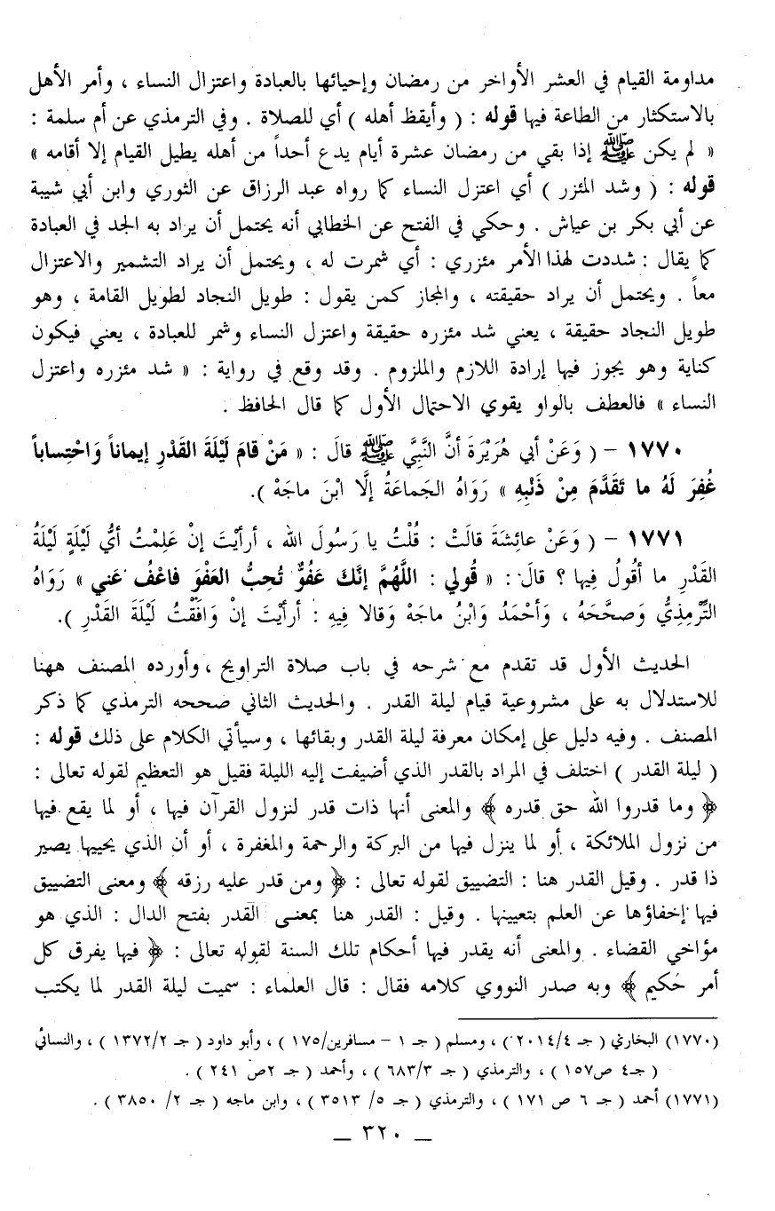 1770 - (وَعَنْ أَبِي هُرَيْرَةَ أَنَّ النَّبِيَّ - صَلَّى اللَّهُ عَلَيْهِ وَسَلَّمَ - قَالَ: «مَنْ قَامَ لَيْلَةَ الْقَدْرِ إيمَانًا وَاحْتِسَابًا غُفِرَ لَهُ مَا تَقَدَّمَ مِنْ ذَنْبِهِ» رَوَاهُ الْجَمَاعَةُ إلَّا ابْنَ مَاجَهْ) . .