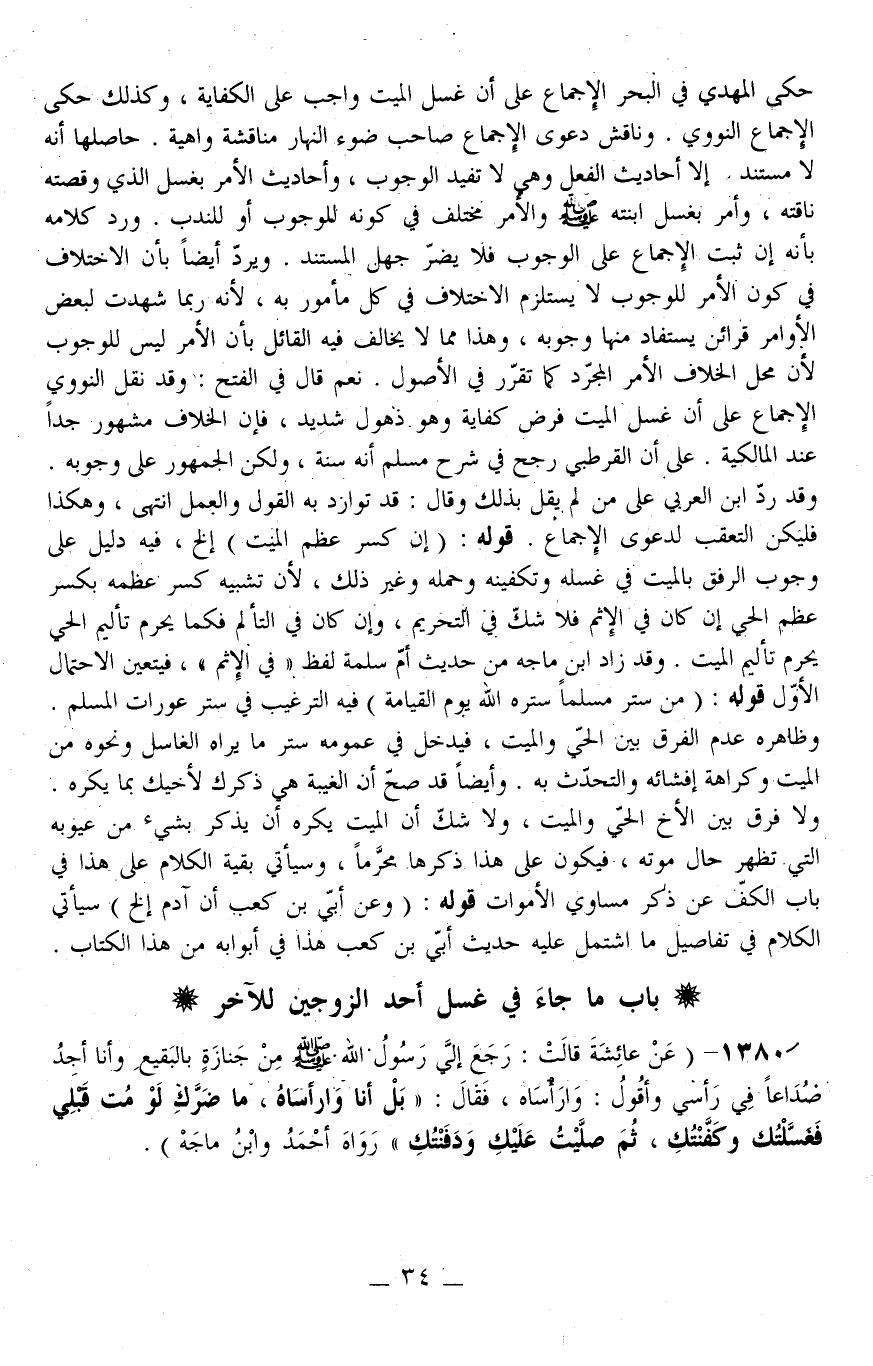 ـــــــــــــــــــــــــــــQحَكَى الْمَهْدِيُّ فِي الْبَحْرِ الْإِجْمَاعَ عَلَى أَنَّ غُسْلَ الْمَيِّت وَاجِبٌ عَلَى الْكِفَايَةِ، وَكَذَلِكَ حَكَى الْإِجْمَاعَ النَّوَوِيُّ وَنَاقَشَ دَعْوَى الْإِجْمَاعِ صَاحِبُ ضَوْءِ النَّهَارِ مُنَاقَشَةً وَاهِيَةً. حَاصِلُهَا أَنَّهُ لَا مُسْتَنَدَ لَهُ إلَّا أَحَادِيثُ الْفِعْلِ وَهِيَ لَا تُفِيدُ الْوُجُوبَ.