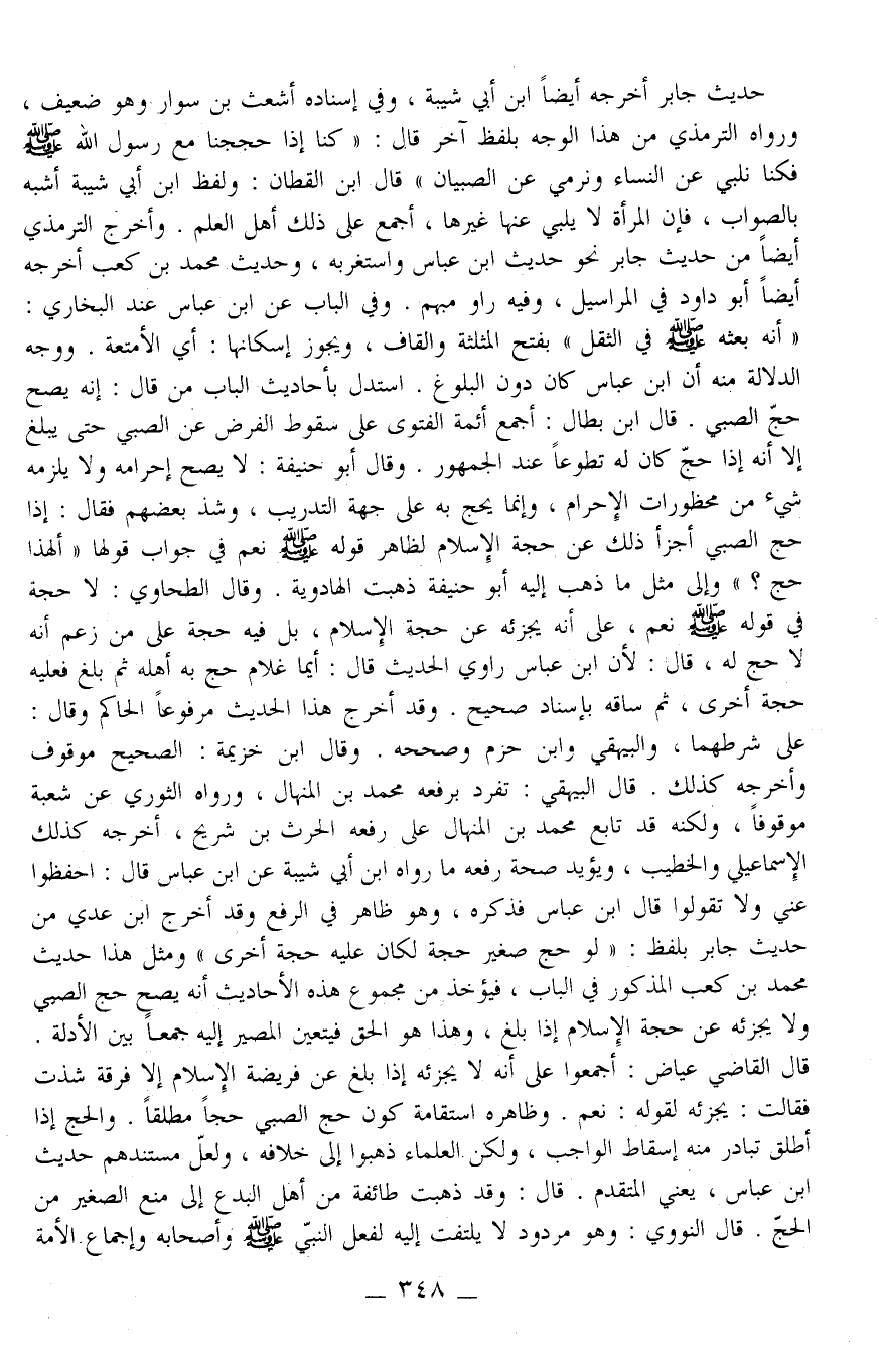 وَقَالَ أَبُو حَنِيفَةَ: لَا يَصِحُّ إحْرَامُهُ وَلَا يَلْزَمُهُ شَيْءٌ مِنْ مَحْظُورَاتِ الْإِحْرَامِ، وَإِنَّمَا يُحَجُّ بِهِ عَلَى جِهَةِ التَّدْرِيبِ، وَشَذَّ بَعْضُهُمْ فَقَالَ: إذَا حَجَّ الصَّبِيُّ أَجْزَأَ ذَلِكَ عَنْ حَجَّةِ الْإِسْلَامِ لِظَاهِرِ قَوْلِهِ - صَلَّى اللَّهُ عَلَيْهِ وَسَلَّمَ - نَعَمْ فِي جَوَابِ قَوْلِهَا " أَلِهَذَا حَجٌّ؟ " وَإِلَى مِثْلِ مَا ذَهَبَ إلَيْهِ أَبُو حَنِيفَةَ ذَهَبَتْ الْهَادَوِيَّةُ. وَقَالَ الطَّحَاوِيُّ: لَا حُجَّةَ فِي قَوْلِهِ - صَلَّى اللَّهُ عَلَيْهِ وَسَلَّمَ - نَعَمْ، عَلَى أَنَّهُ يُجْزِئُهُ عَنْ حَجَّةِ الْإِسْلَامِ، بَلْ فِيهِ حُجَّةٌ عَلَى مَنْ زَعَمَ أَنَّهُ لَا حَجَّ لَهُ، قَالَ: لِأَنَّ ابْنَ عَبَّاسٍ رَاوِيَ الْحَدِيثِ قَالَ: «أَيُّمَا غُلَامٍ حَجَّ بِهِ أَهْلُهُ ثُمَّ بَلَغَ فَعَلَيْهِ حَجَّةٌ أُخْرَى» ، ثُمَّ سَاقَهُ بِإِسْنَادٍ صَحِيحٍ وَقَدْ أَخْرَجَ هَذَا الْحَدِيثَ مَرْفُوعًا الْحَاكِمُ وَقَالَ: عَلَى شَرْطِهِمَا، وَالْبَيْهَقِيُّ وَابْنُ حَزْمٍ وَصَحَّحَهُ. وَقَالَ ابْنُ خُزَيْمَةَ: الصَّحِيحُ مَوْقُوفٌ وَأَخْرَجَهُ كَذَلِكَ. قَالَ الْبَيْهَقِيُّ: تَفَرَّدَ بِرَفْعِهِ مُحَمَّدُ بْنُ الْمِنْهَالِ، وَرَوَاهُ الثَّوْرِيُّ عَنْ شُعْبَةَ مَوْقُوفًا، وَلَكِنَّهُ قَدْ تَابَعَ مُحَمَّدُ بْنُ الْمِنْهَالِ عَلَى رَفْعِهِ الْحَارِثُ بْنُ شُرَيْحٍ، أَخْرَجَهُ كَذَلِكَ الْإِسْمَاعِيلِيُّ وَالْخَطِيبُ، وَيُؤَيِّدُ صِحَّةَ رَفْعِهِ مَا رَوَاهُ ابْنُ أَبِي شَيْبَةَ عَنْ ابْنِ عَبَّاسٍ قَالَ: احْفَظُوا عَنِّي وَلَا تَقُولُوا قَالَ ابْنُ عَبَّاسٍ فَذَكَرَهُ، وَهُوَ ظَاهِرٌ فِي الرَّفْعِ وَقَدْ أَخْرَجَ ابْنُ عَدِيٍّ مِنْ حَدِيثِ جَابِرٍ بِلَفْظِ: " لَوْ حَجَّ صَغِيرٌ حَجَّةً لَكَانَ عَلَيْهِ حَجَّةٌ أُخْرَى " وَمِثْلُ هَذَا حَدِيثُ مُحَمَّدِ بْنِ كَعْبٍ الْمَذْكُورُ فِي الْبَابِ
