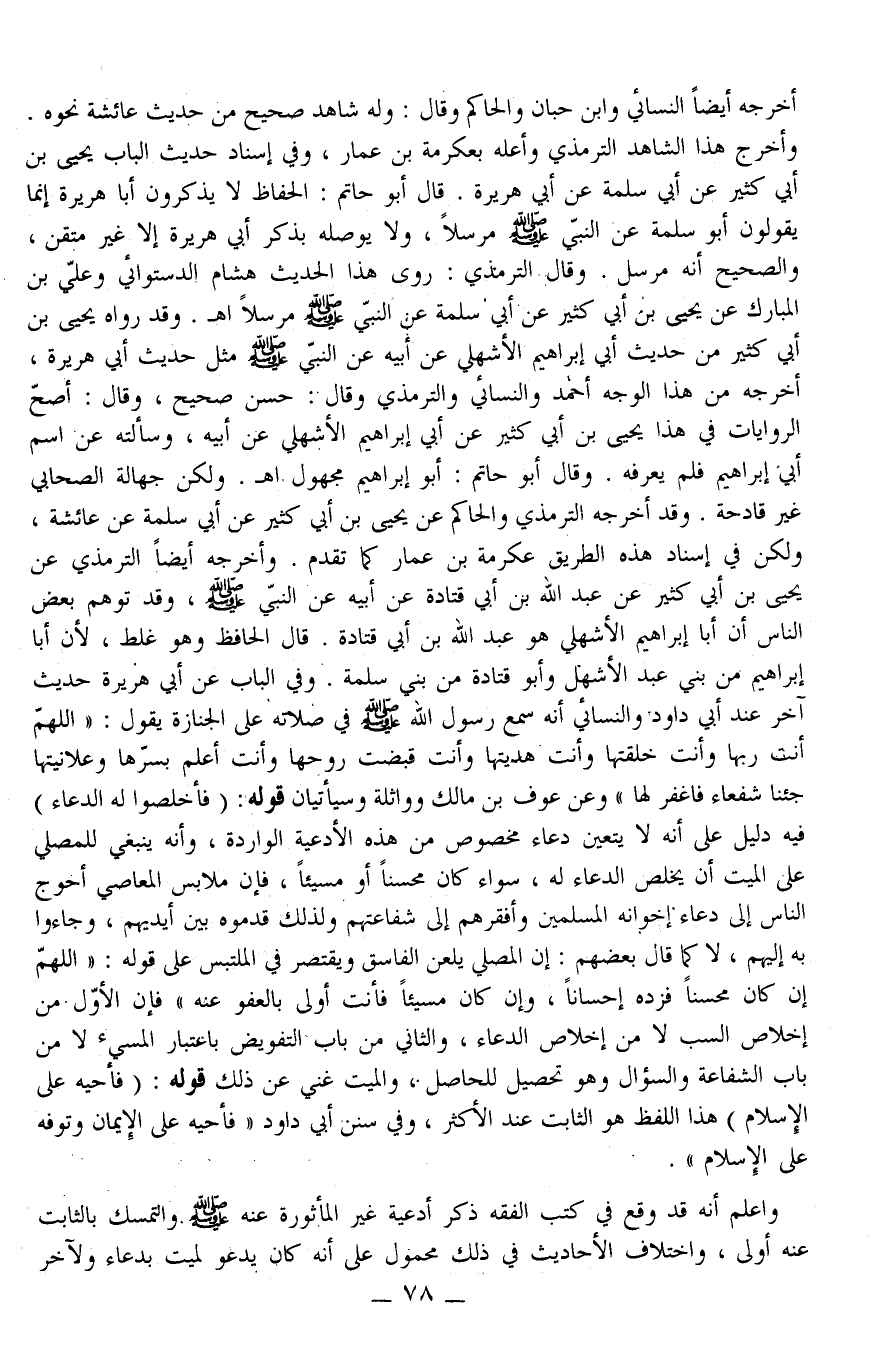 وَاعْلَمْ أَنَّهُ قَدْ وَقَعَ فِي كُتُبِ الْفِقْهِ ذِكْرُ أَدْعِيَةٍ غَيْرِ الْمَأْثُورَةِ عَنْهُ - صَلَّى اللَّهُ عَلَيْهِ وَسَلَّمَ - وَالتَّمَسُّكُ بِالثَّابِتِ عَنْهُ أَوْلَى، وَاخْتِلَافُ الْأَحَادِيثِ فِي ذَلِكَ مَحْمُولٌ عَلَى أَنَّهُ كَانَ يَدْعُو لِمَيِّتٍ بِدُعَاءٍ وَلِآخَرَ