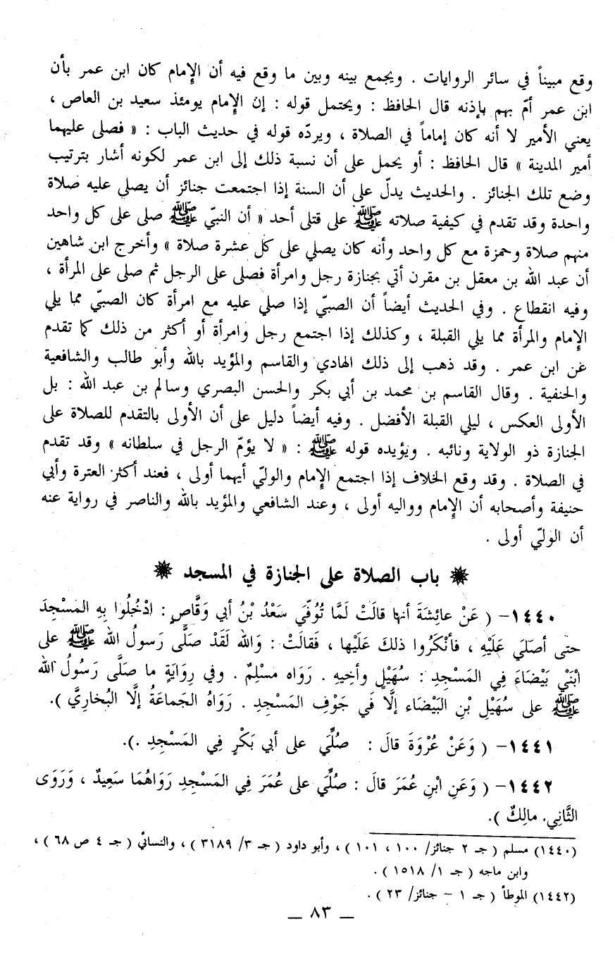 1440 - (عَنْ عَائِشَةَ أَنَّهَا قَالَتْ «لَمَّا تُوُفِّيَ سَعْدُ بْنُ أَبِي وَقَّاصٍ: اُدْخُلُوا بِهِ الْمَسْجِدَ حَتَّى أُصَلِّيَ عَلَيْهِ، فَأَنْكَرُوا ذَلِكَ عَلَيْهَا، فَقَالَتْ: وَاَللَّهِ لَقَدْ صَلَّى رَسُولُ اللَّهِ - صَلَّى اللَّهُ عَلَيْهِ وَسَلَّمَ - عَلَى ابْنَيْ بَيْضَاءَ فِي الْمَسْجِدِ: سُهَيْلٍ وَأَخِيهِ» . رَوَاهُ مُسْلِمٌ.